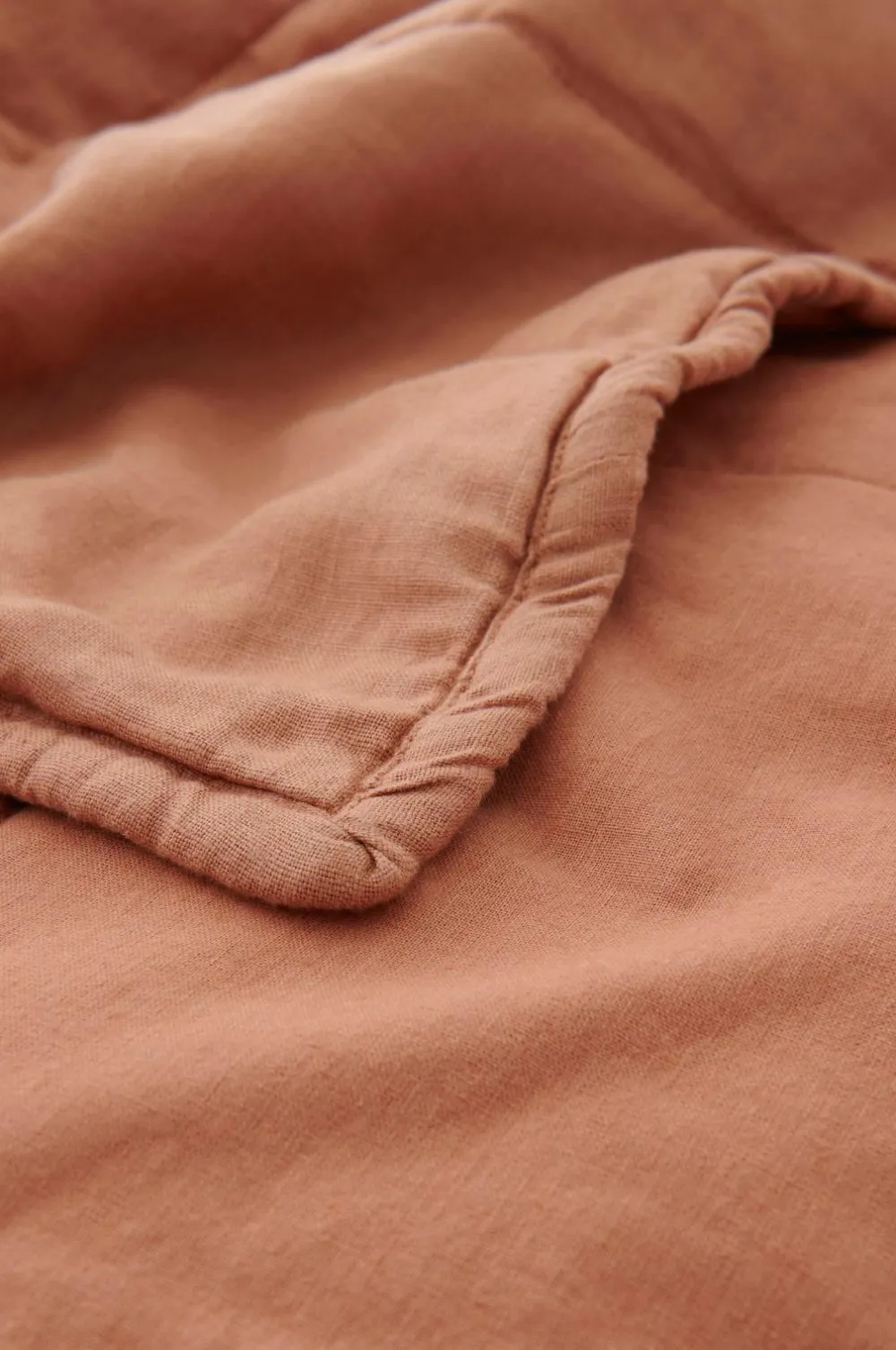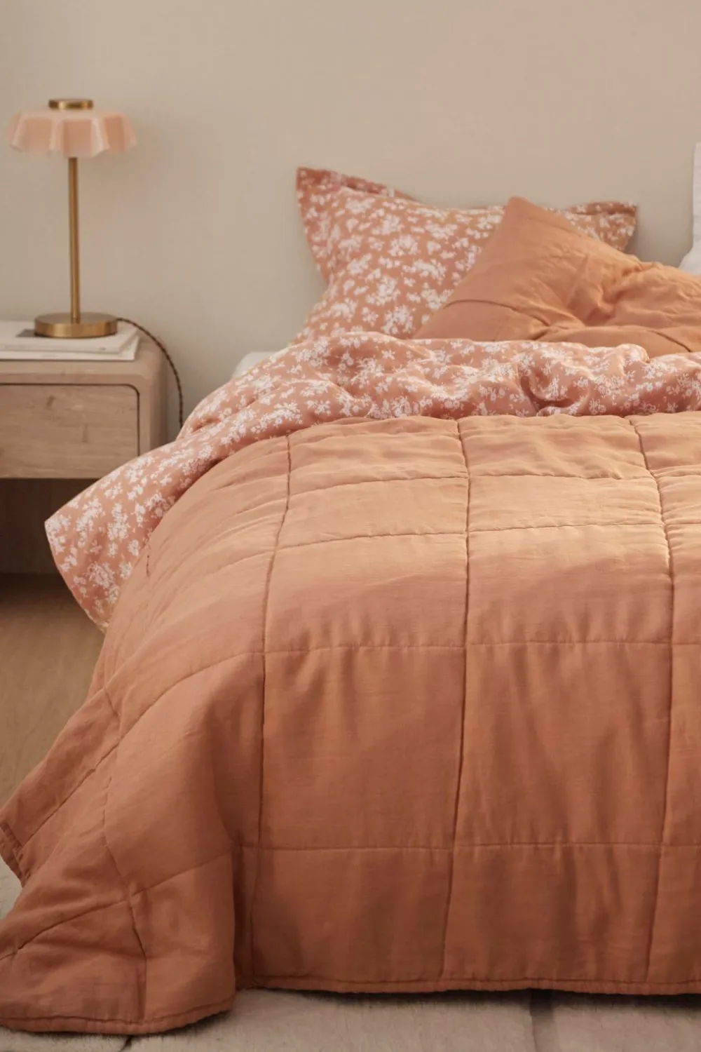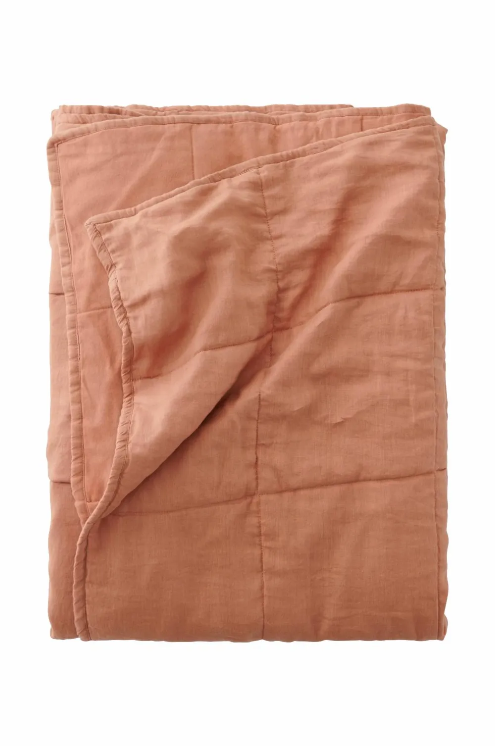 Let, ternquiltet sengetæppe med forside i vasket hør. Bagside i bomuld.