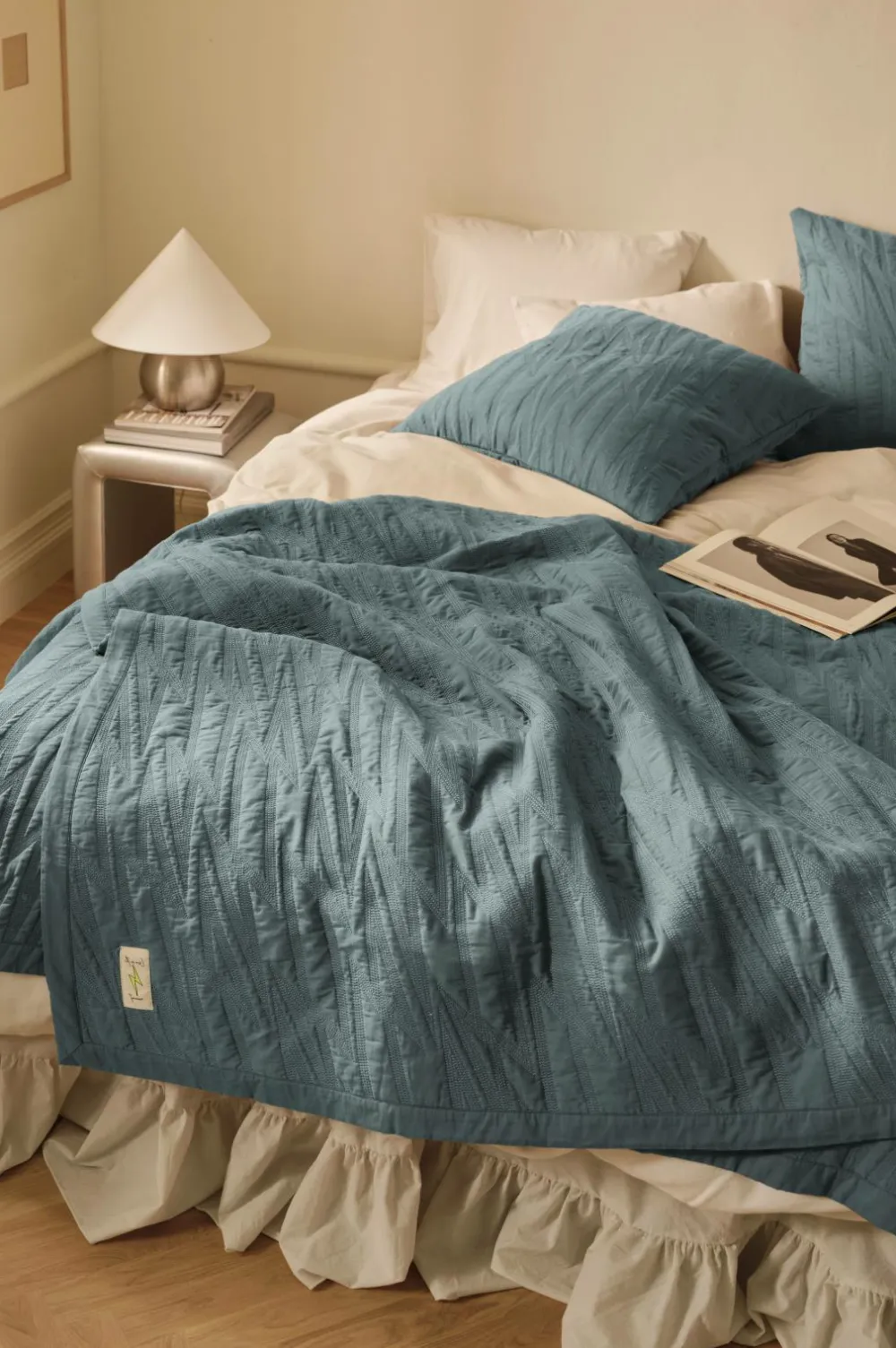 • Quiltet sengetæppe i bomuldstwill med Lynmønster