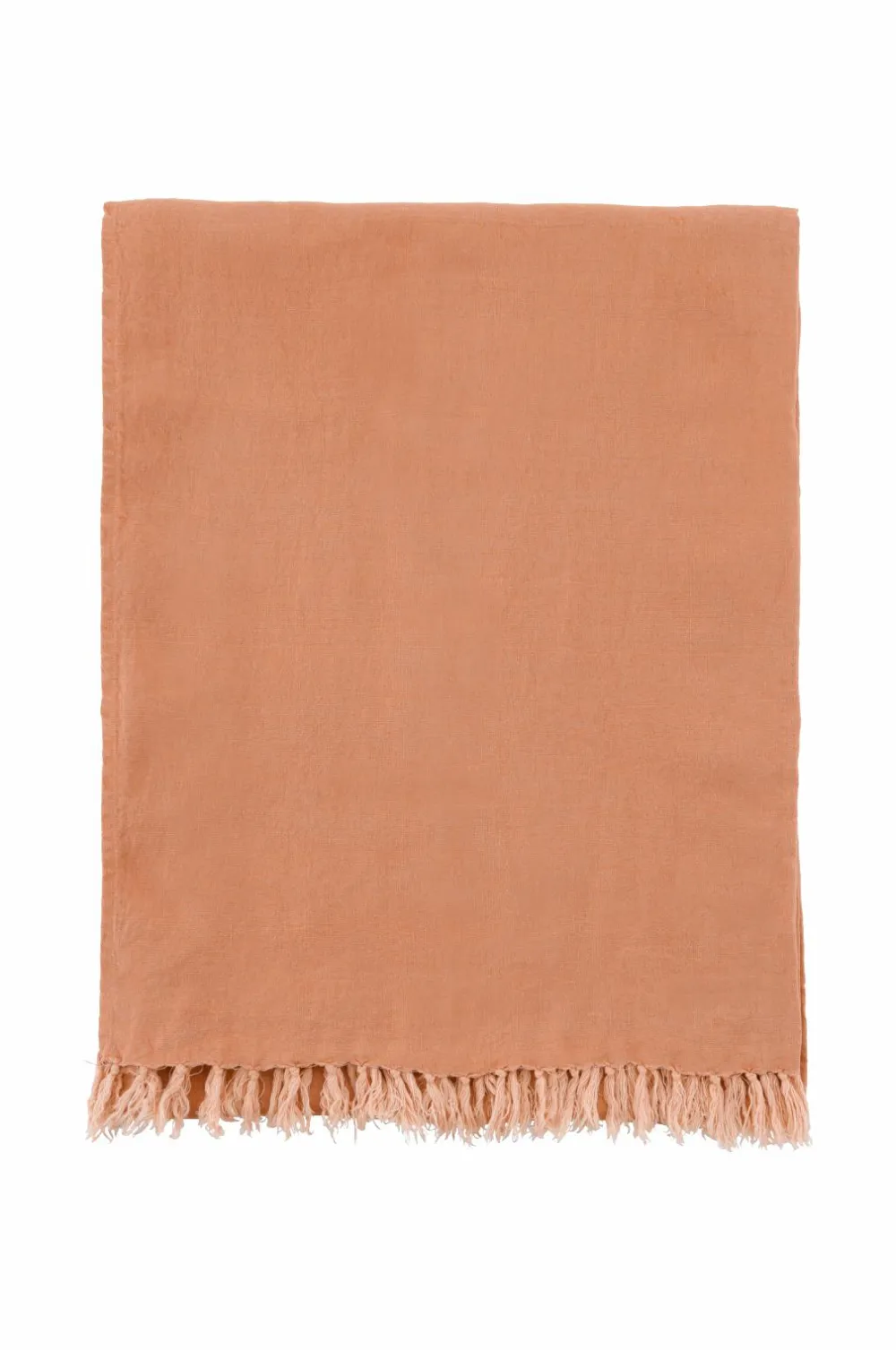Sengetæppe af vasket, fransk hør i kraftig kvalitet med frynser på to sider. Kan også anvendes som plaid.