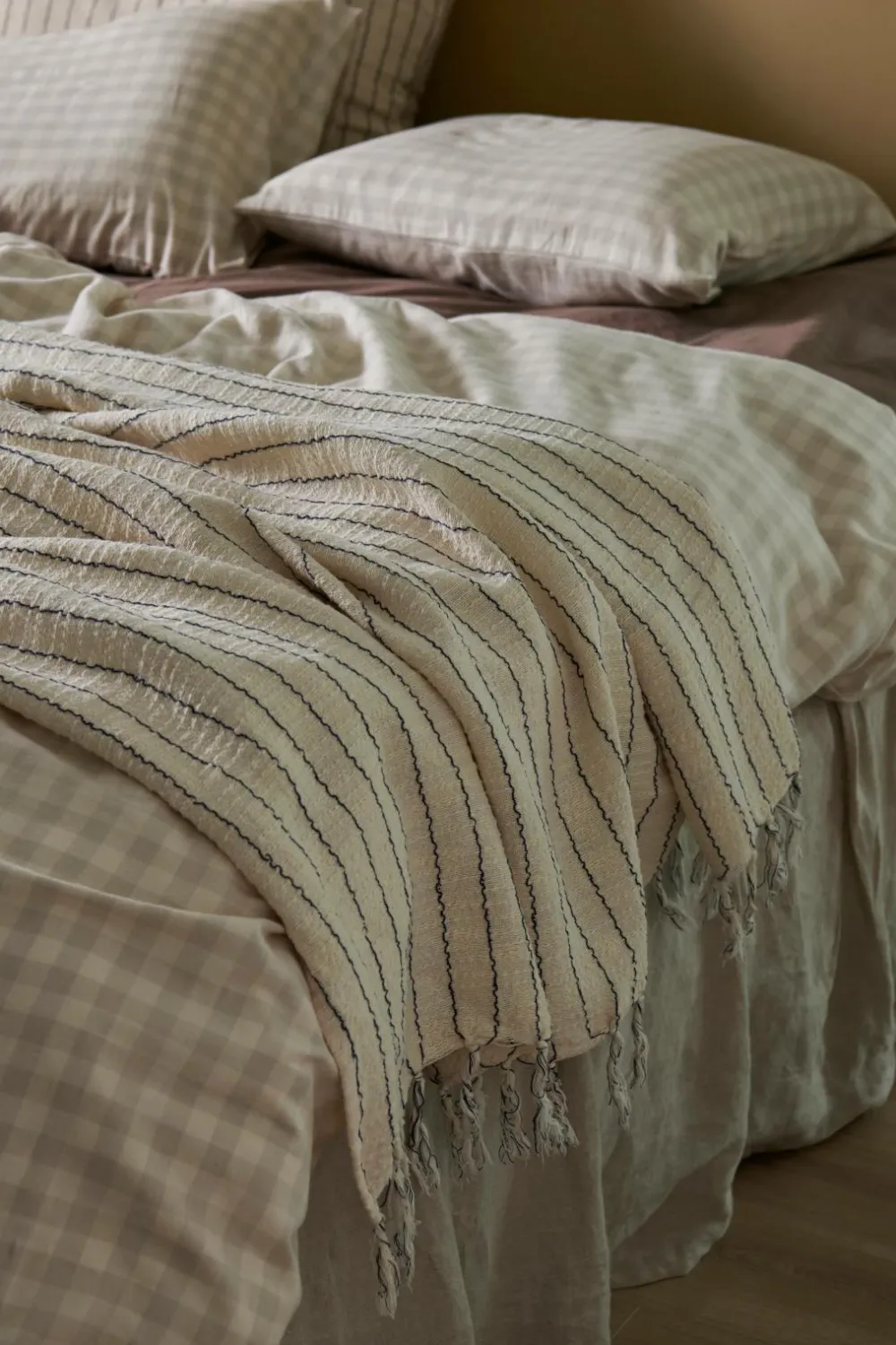 Plaid eller tæppe designet i et struktureret stof. Vælg mellem fire forskellige designs i forskellige materialeblandinger.