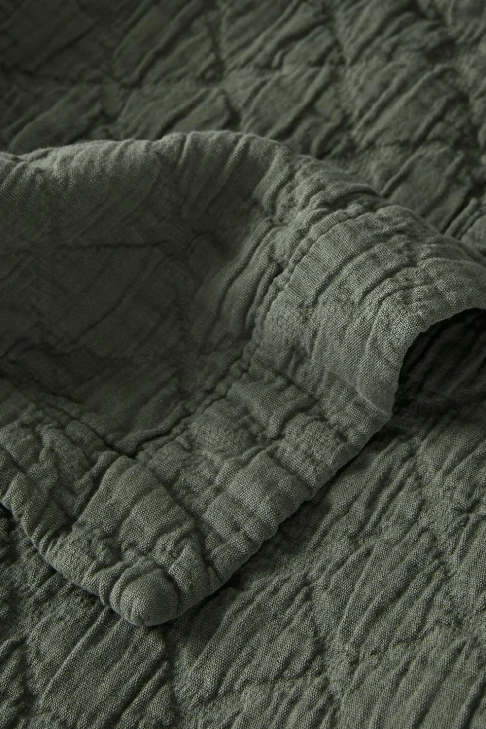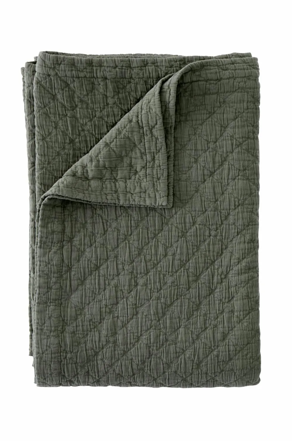 Sengetæppe i blødvasket bomuld med 5 cm søm rundt om.