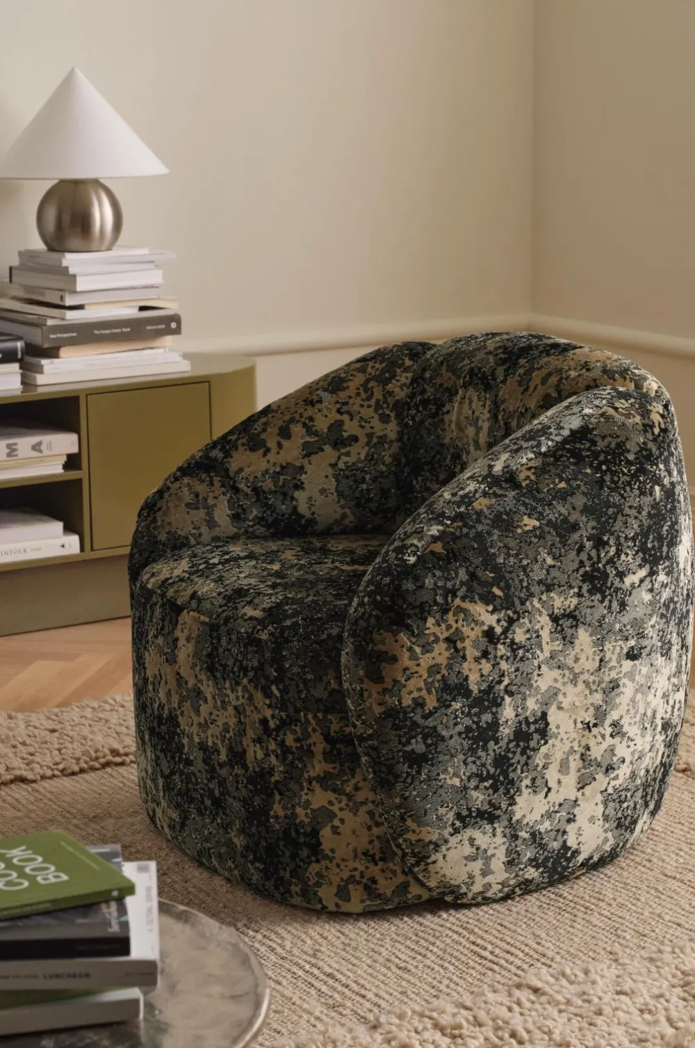 • Takket være stoffets glitrende effekt har hver lænestol et unikt udseende