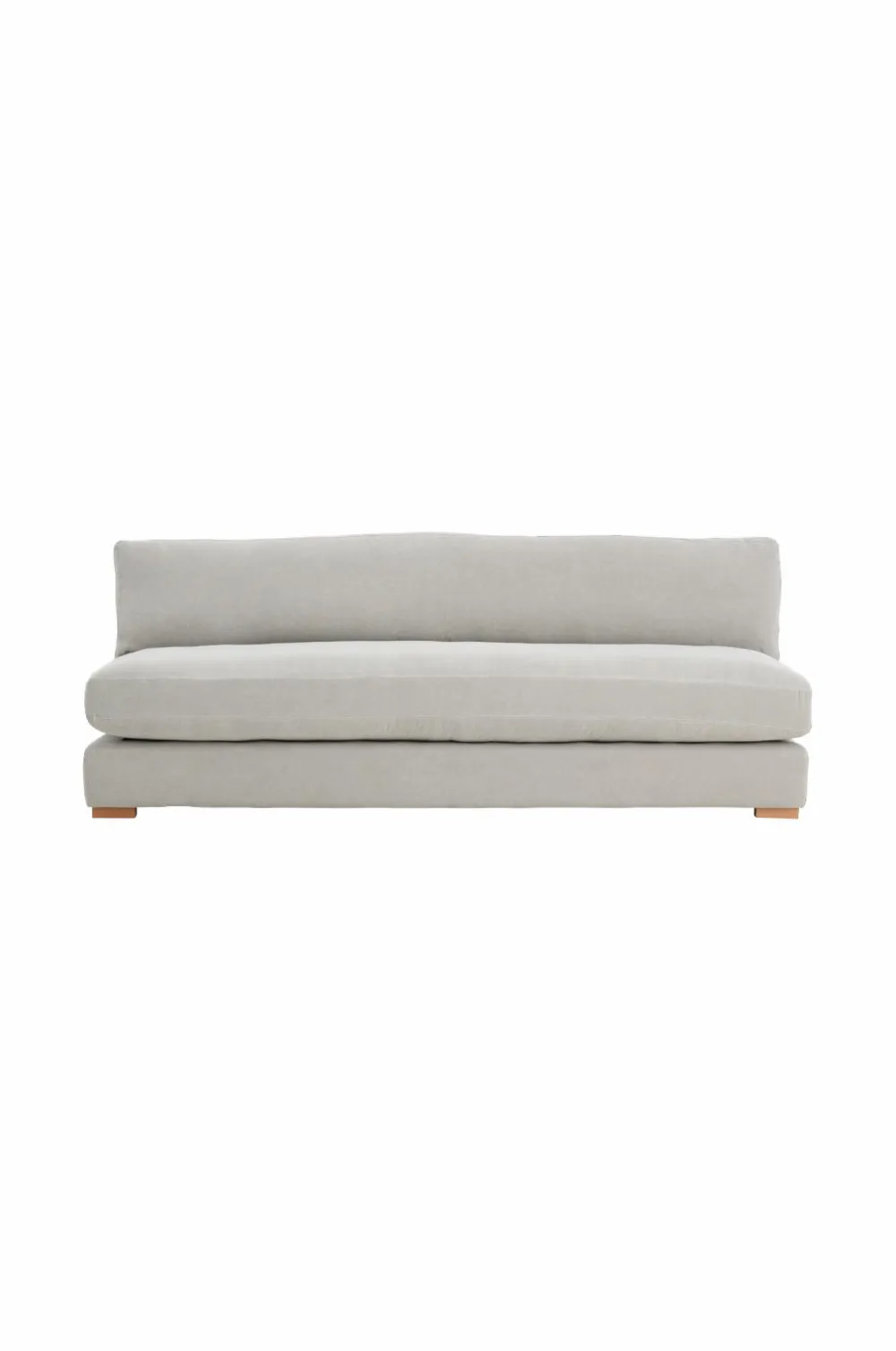 3-pers. sofa med betræk i 100% hør. Ramme og stel i fyrretræ og plywood. Ben af træ. Skumfyld i siddehynden og fibre og fjer i ryghynden for ekstra komfort. Aftageligt betræk på hynderne. Frihøjde under møbel 3 cm. Samlet.
