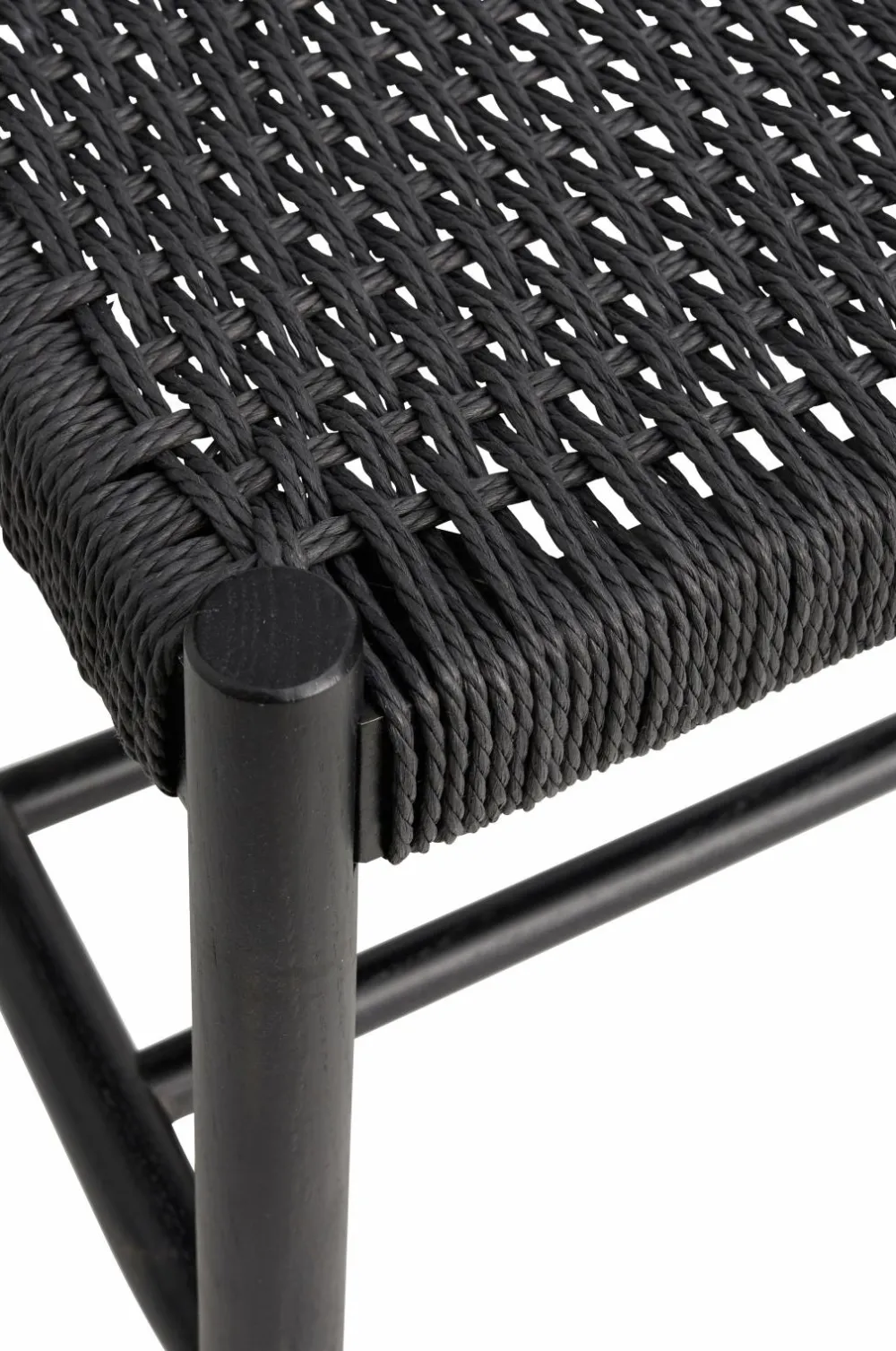 En letplaceret bænk med hylde, f.eks. til sko. Bænken er velegnet til både entréen, soveværelset og køkkenet. Rammen er i massiv eg. Sæde af flettet, vokset papirsreb. Hylde med to tværpinde. Højde fra gulvet op til hylden 16,5 cm. Maks. belastning 220 kg.