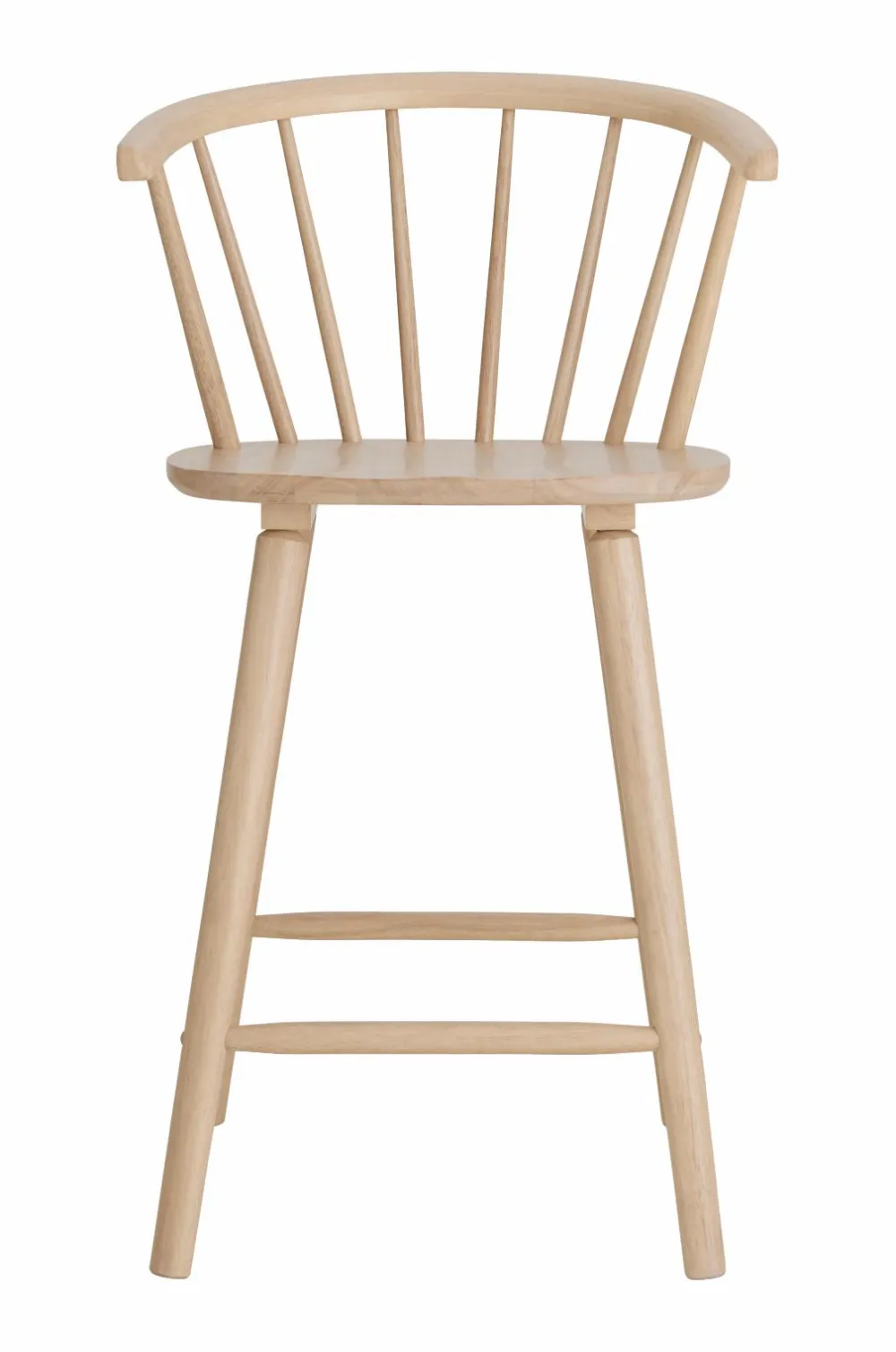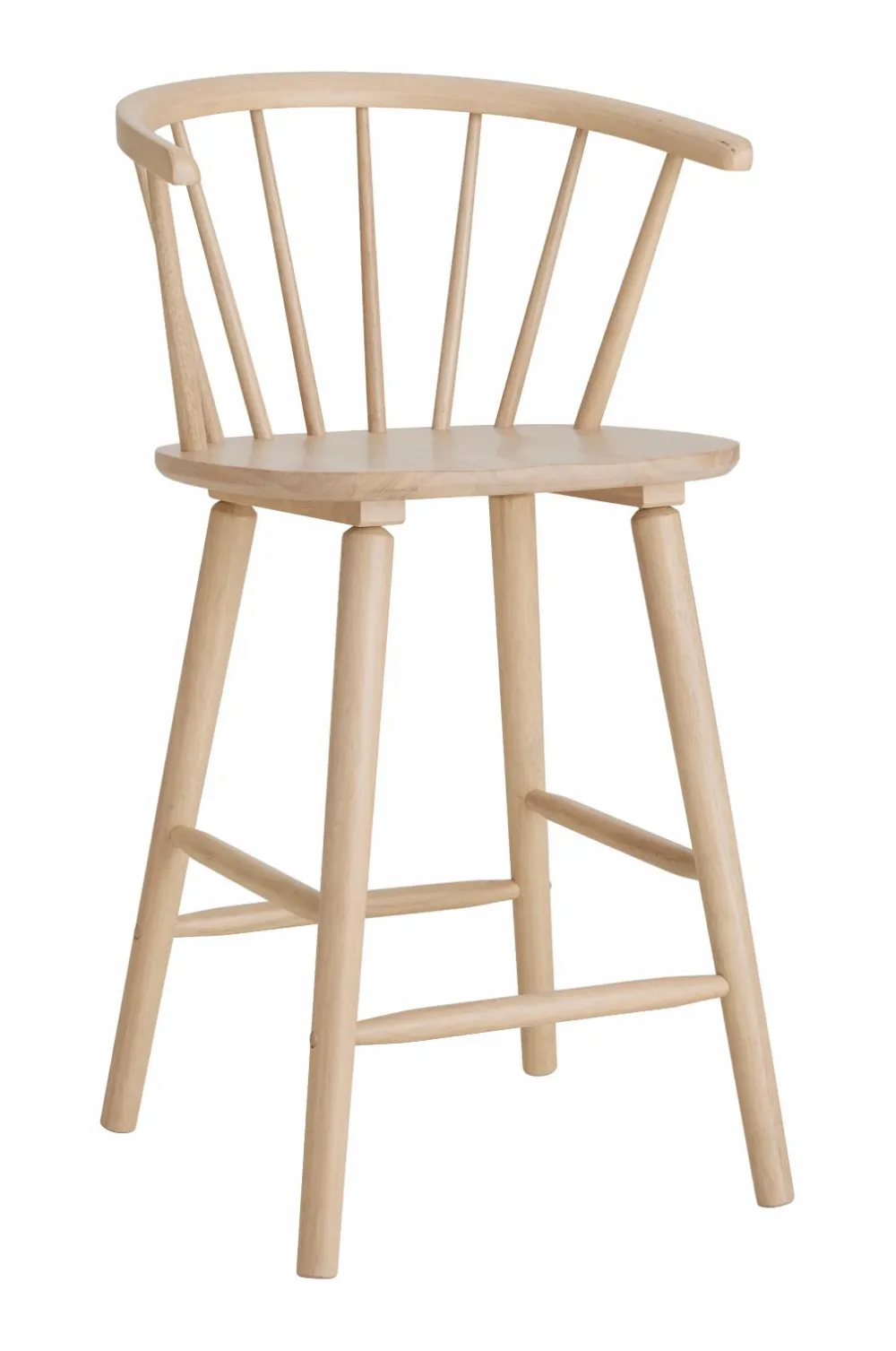 Barstol i lakeret, massivt gummitræ. Passer til en bordhøjde på 90 cm.