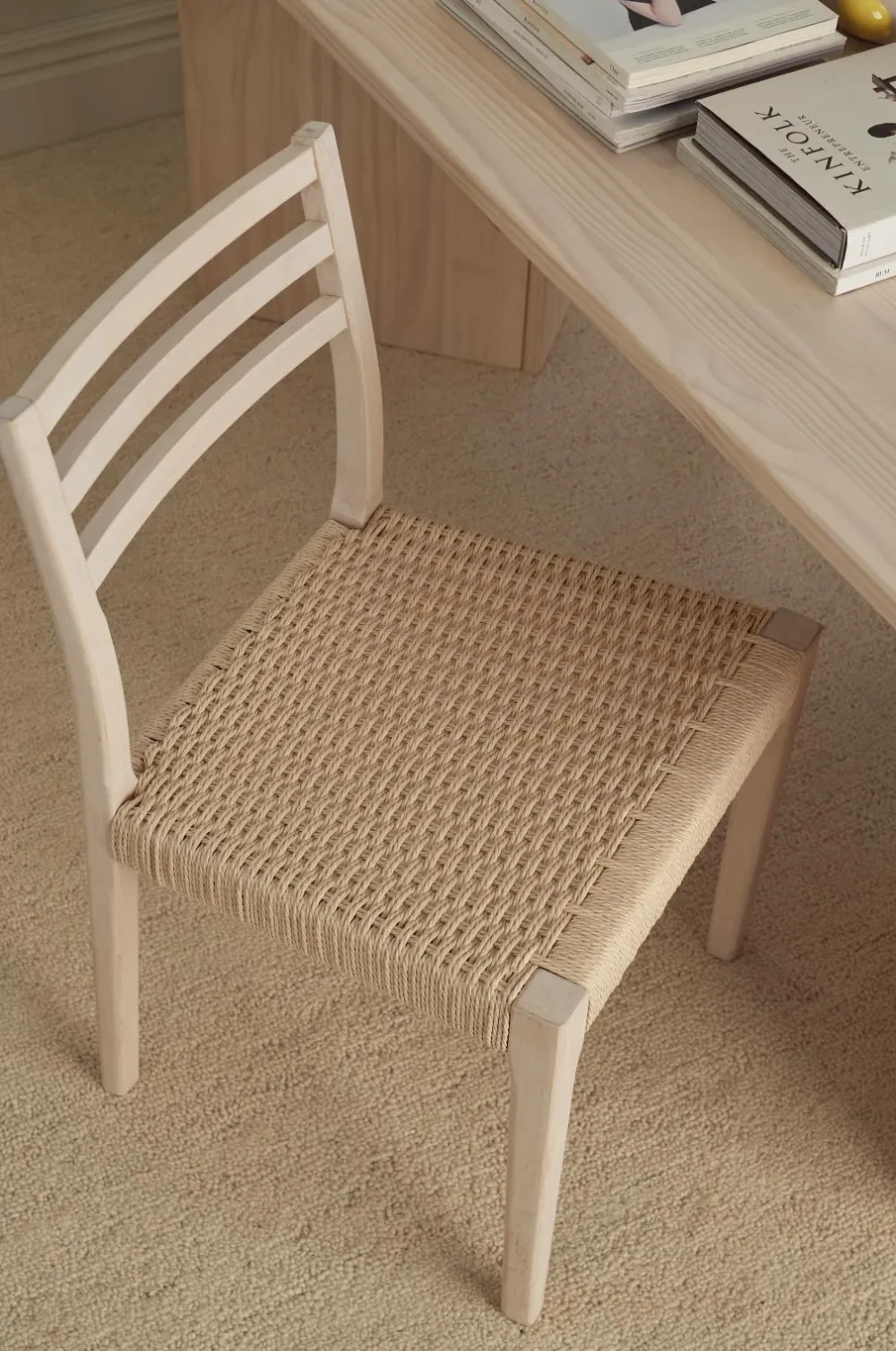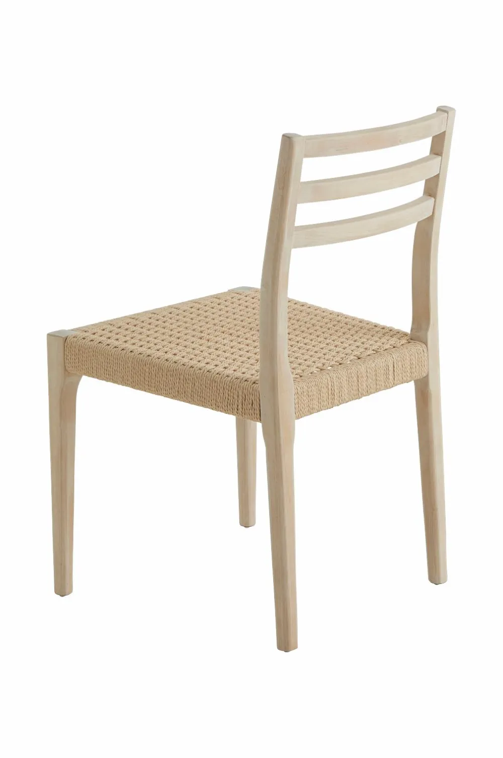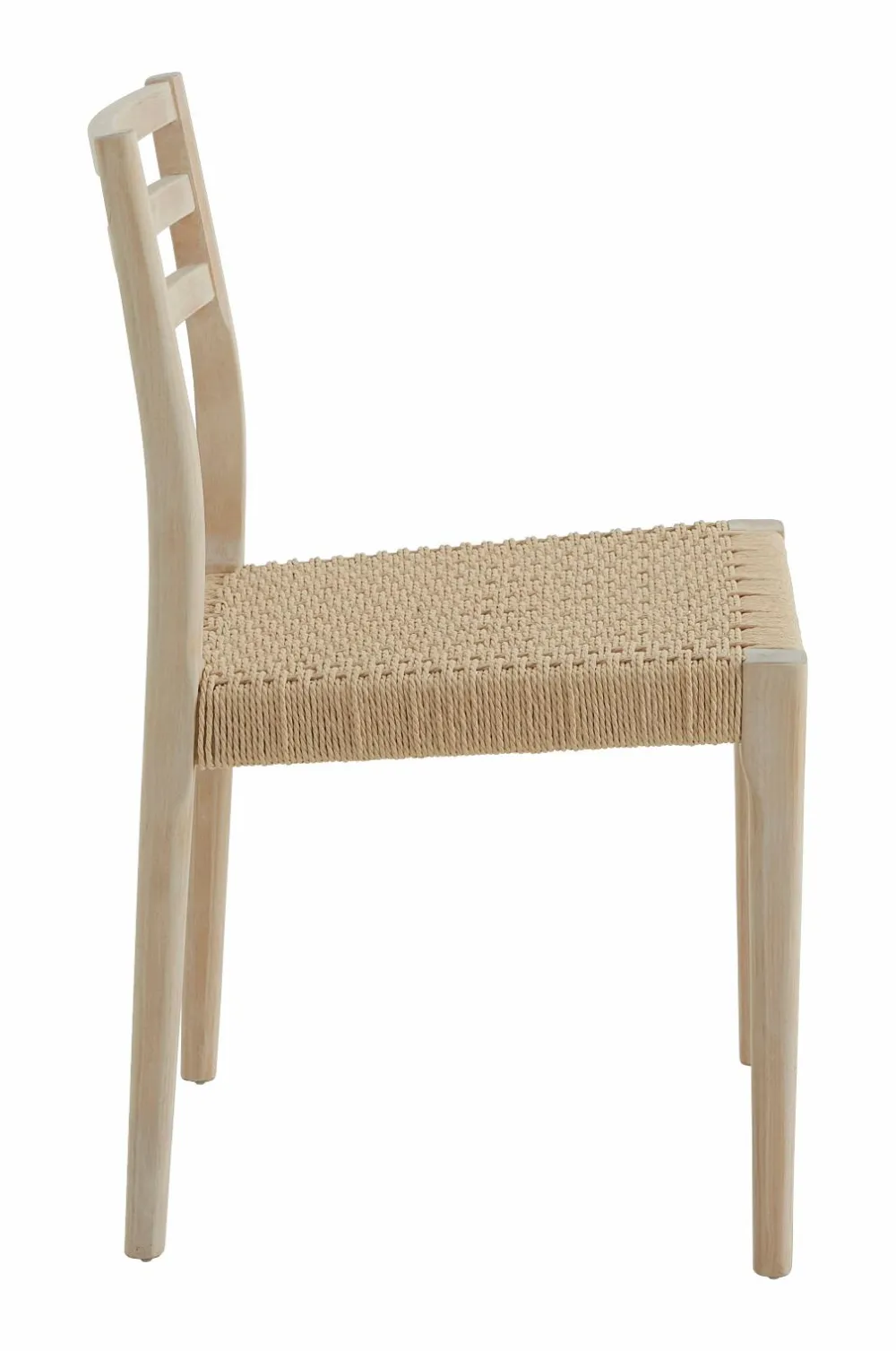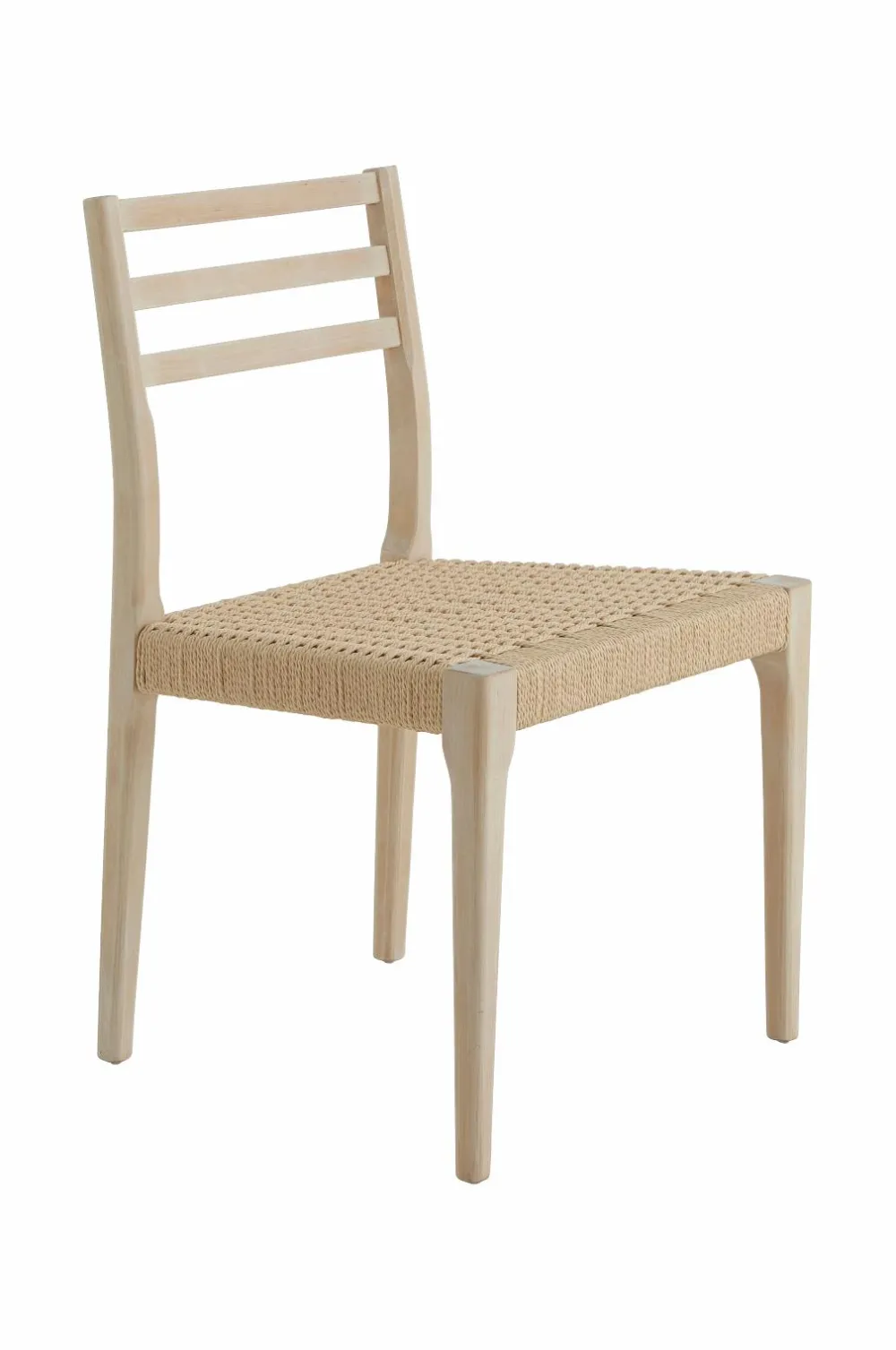 To stole af birk i skandinavisk stil med sæde af flettet, vokset papirsreb. Totale mål: 79,5 x 50 x 49 cm. Siddehøjde 45 cm, siddedybde 45 cm. Samlet. Maks. vægt 90 kg.