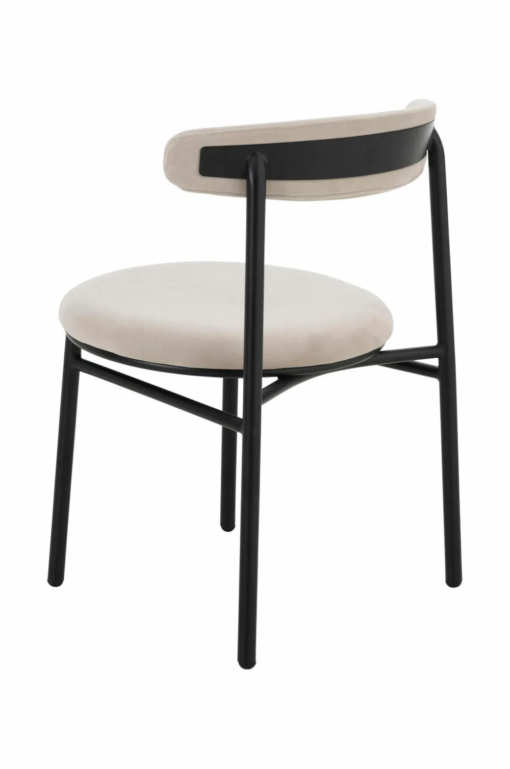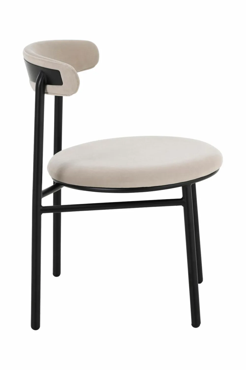 2 stole i moderne design med rundt sæde og svungen ryg. Stel og ben i metal. Sæde og ryg med skumpolstring. Lettere samling.