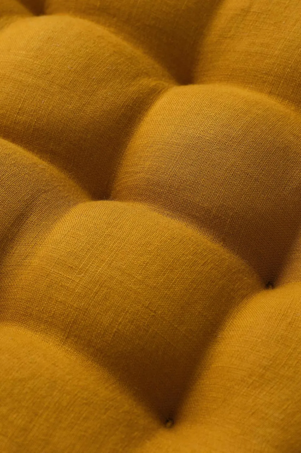 Siddehynde i blød vasket kvalitet af fransk hør med vintagelook og dekorative, håndsyede sting. Fyld af polyester. Str. 40x40x5 cm.