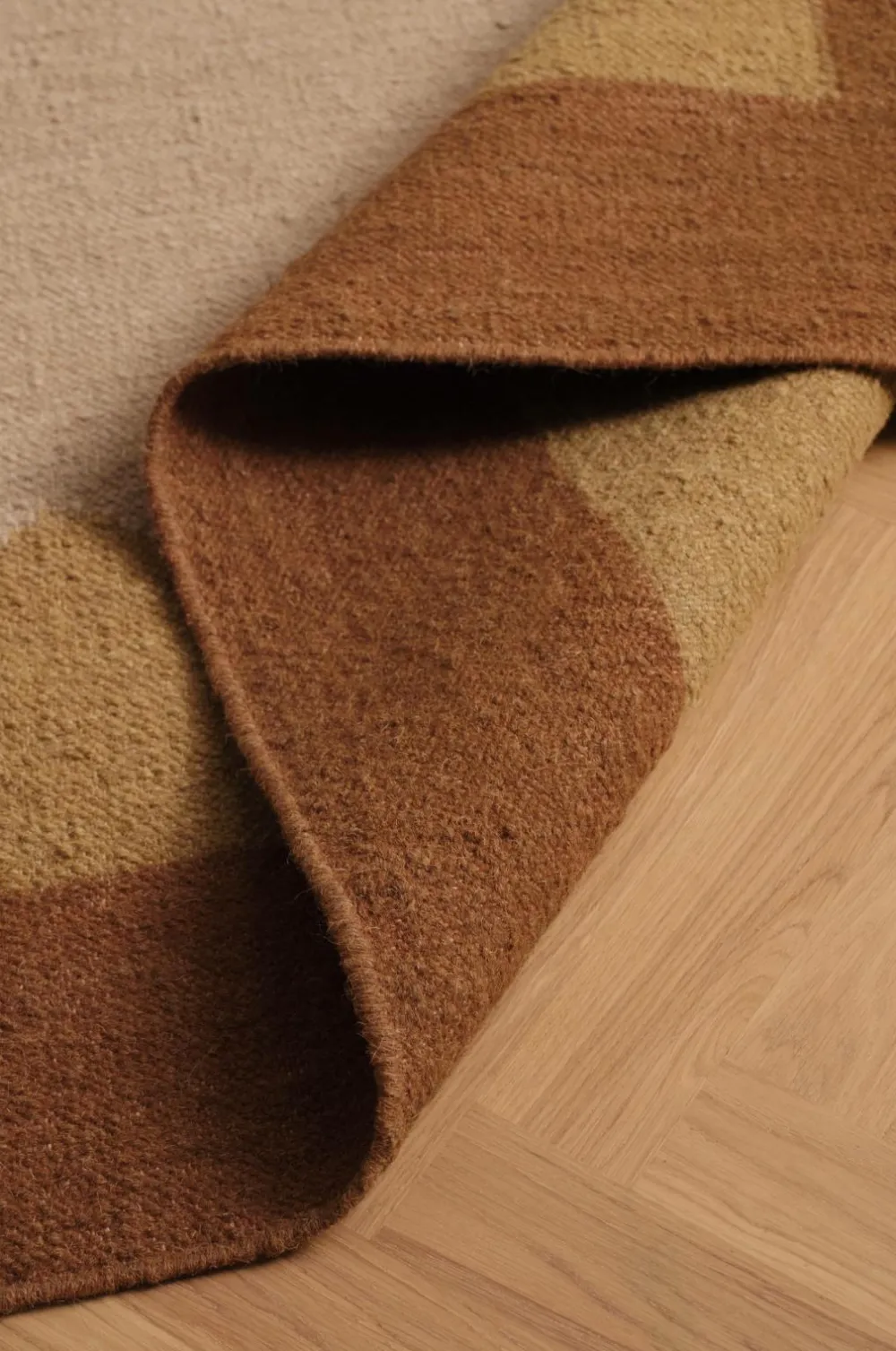 • Glat, håndvævet uldgulvtæppe