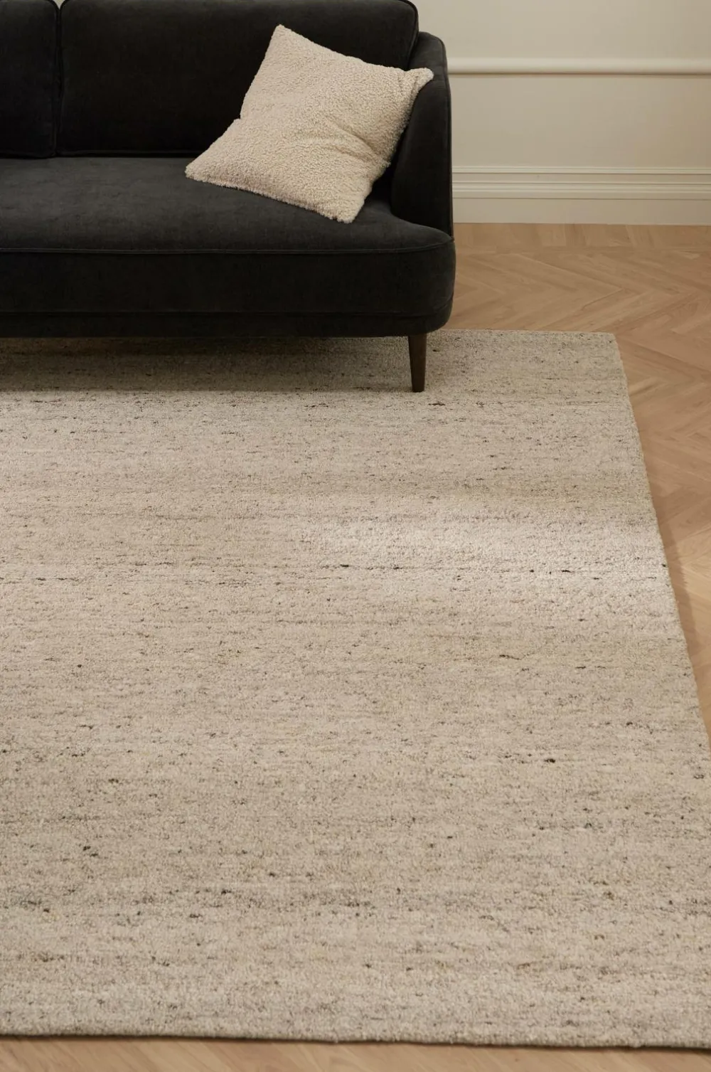 • Håndtuftet uldgulvtæppe i bouclé-look med irregulær struktur