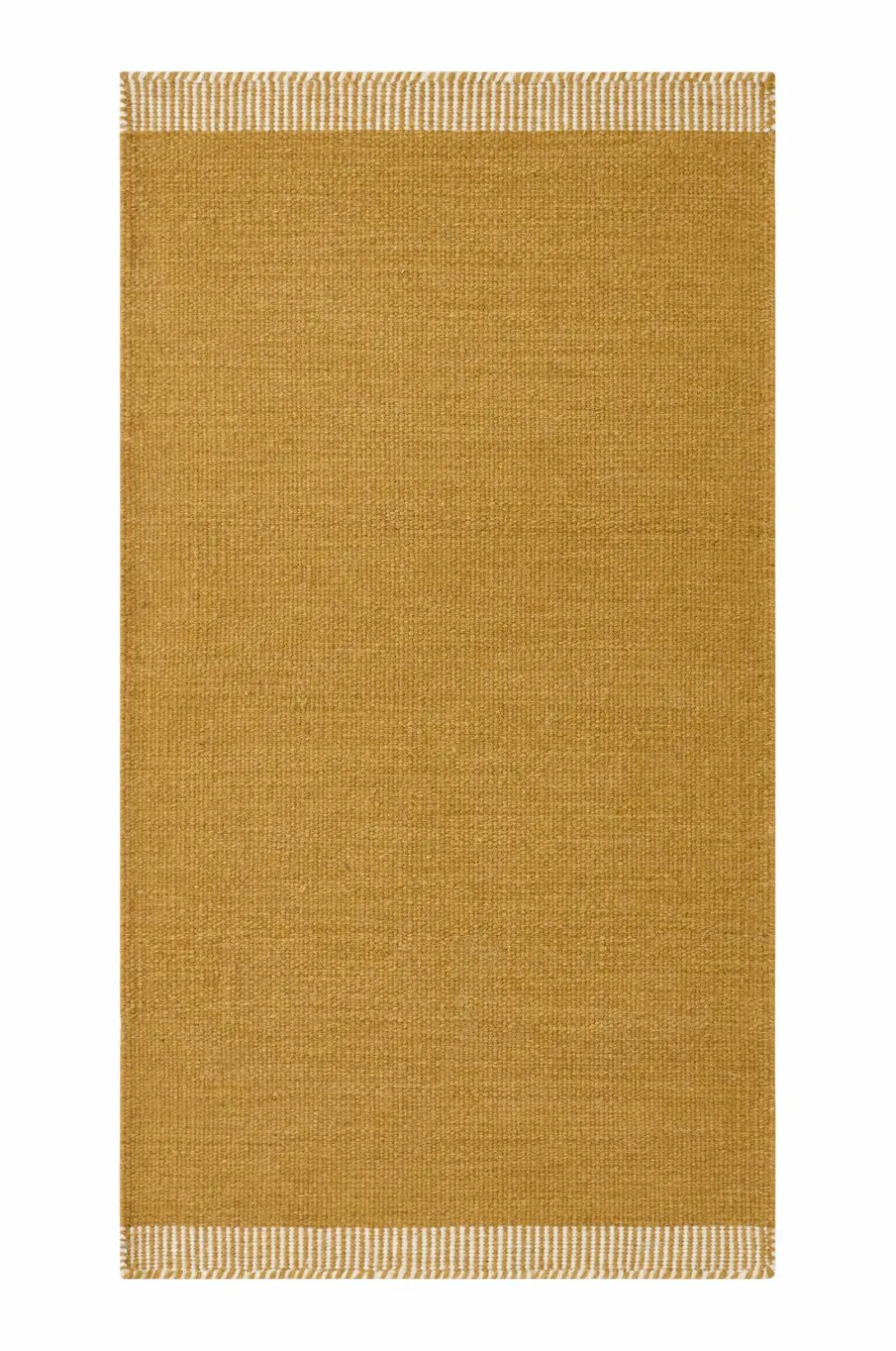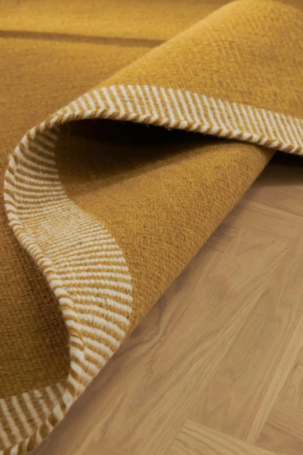 Håndvævet uldtæppe i meleret look. Stribet kant i enderne.