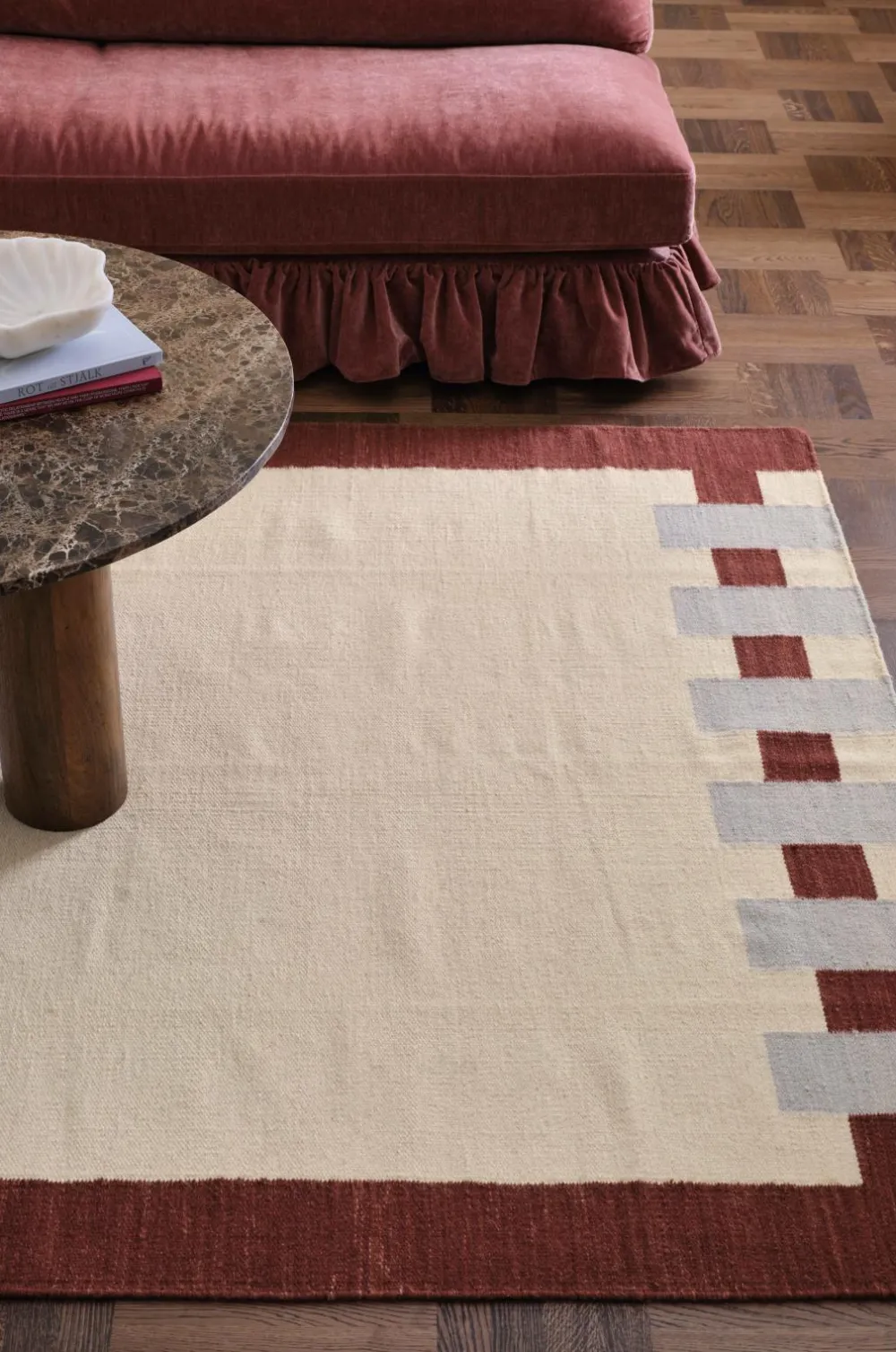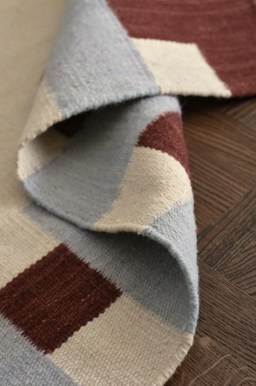 • Håndvævet, glat uldgulvtæppe