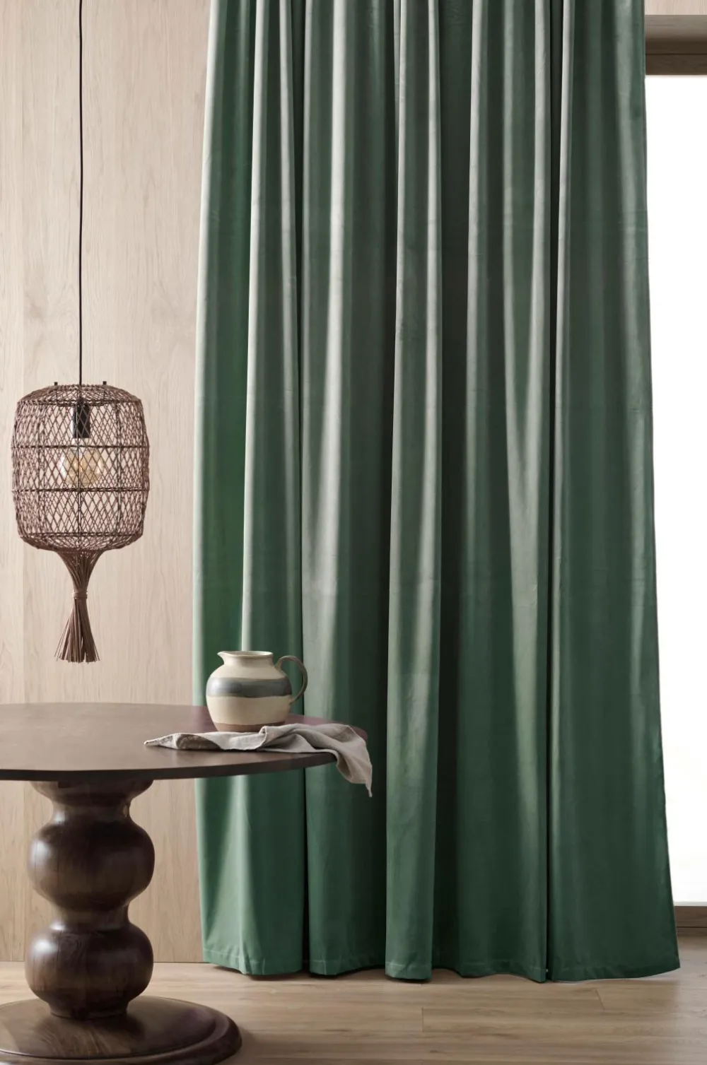 Multibåndslængde i velour med rynkebånd. 290 cm bredt, hvilket betyder, at det passer til både almindelige og til store vinduespartier. Multibåndet gør, at du enten kan hænge gardinerne direkte på en gardinstang gennem de skjulte stropper eller anvende ringe, nålekroge eller fingerkroge. Dette gardin passer også godt til brug på gardinskinne. Snoren i rynkebåndet gør, at du let kan skabe ensartede, flotte læg. Str. 290×300 cm. Sælges i 1-pak.