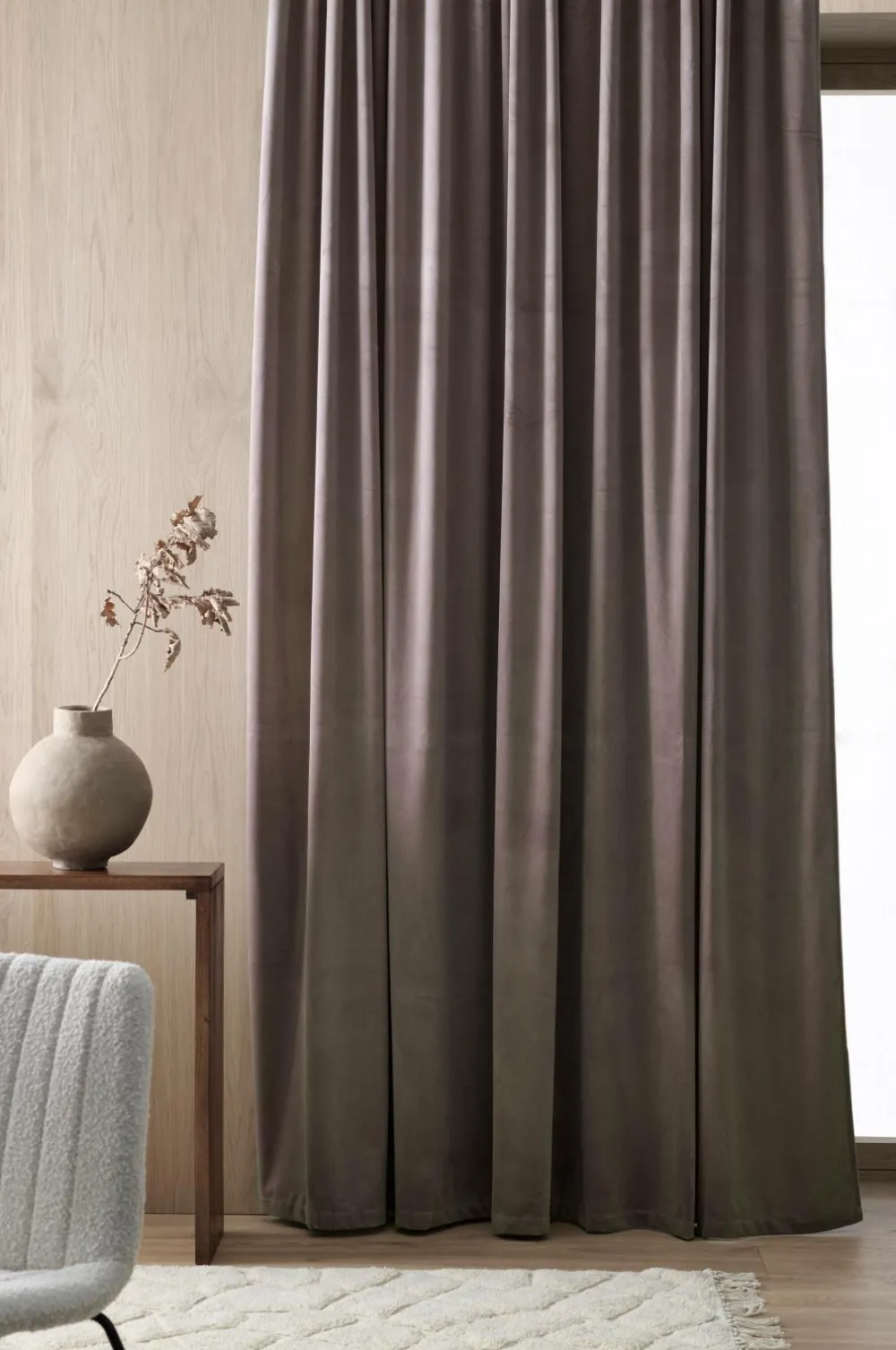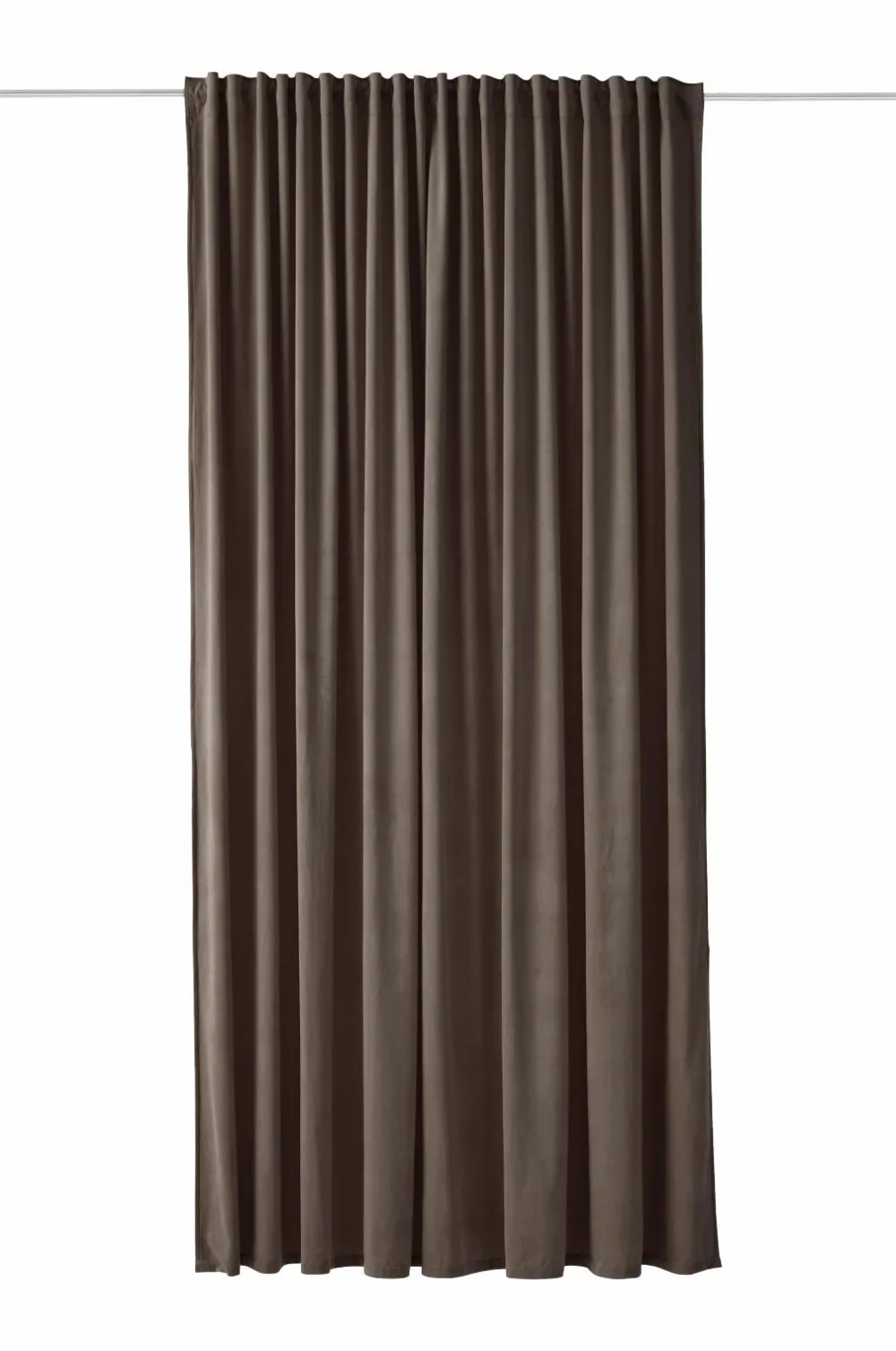 Multibåndslængde i velour med rynkebånd. 290 cm bredt, hvilket betyder, at det passer til både almindelige og til store vinduespartier. Multibåndet gør, at du enten kan hænge gardinerne direkte på en gardinstang gennem de skjulte stropper eller anvende ringe, nålekroge eller fingerkroge. Dette gardin passer også godt til brug på gardinskinne. Snoren i rynkebåndet gør, at du let kan skabe ensartede, flotte læg. Str. 290×300 cm. Sælges i 1-pak.