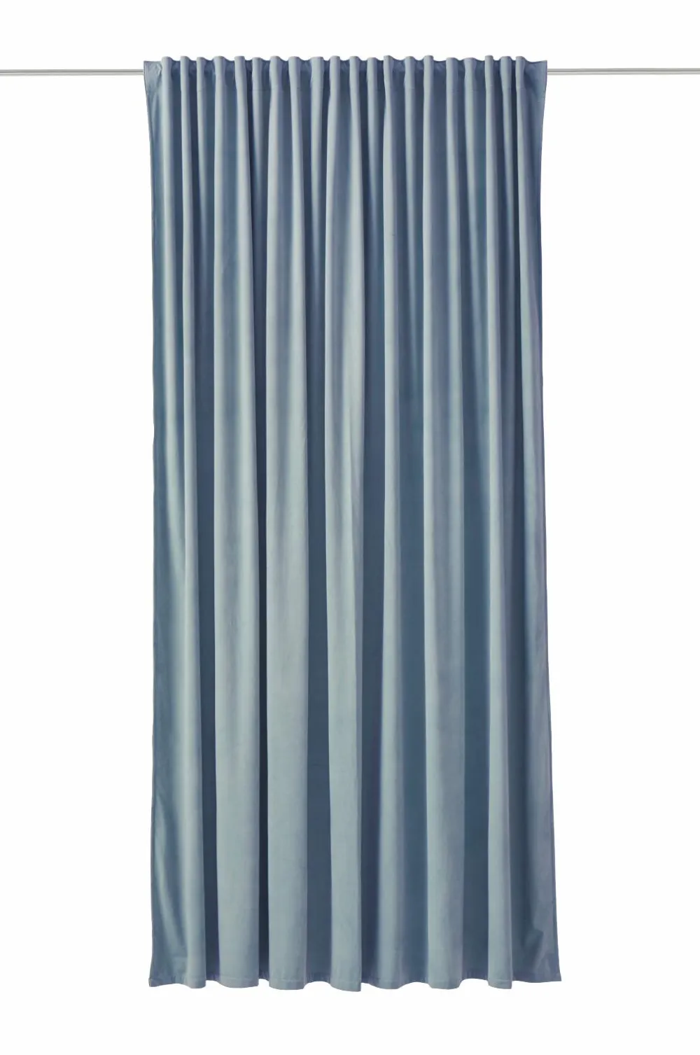 Multibåndslængde i velour med rynkebånd. 290 cm bredt, hvilket betyder, at det passer til både almindelige og til store vinduespartier. Multibåndet gør, at du enten kan hænge gardinerne direkte på en gardinstang gennem de skjulte stropper eller anvende ringe, nålekroge eller fingerkroge. Dette gardin passer også godt til brug på gardinskinne. Snoren i rynkebåndet gør, at du let kan skabe ensartede, flotte læg. Str. 290×300 cm. Sælges i 1-pak.