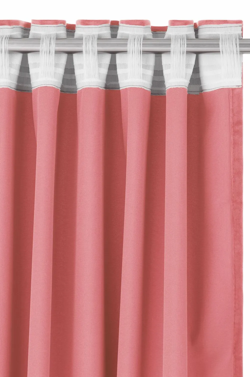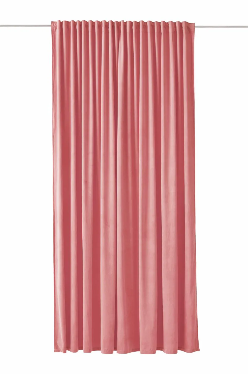 Multibåndslængde i velour med rynkebånd. 290 cm bredt, hvilket betyder, at det passer til både almindelige og til store vinduespartier. Multibåndet gør, at du enten kan hænge gardinerne direkte på en gardinstang gennem de skjulte stropper eller anvende ringe, nålekroge eller fingerkroge. Dette gardin passer også godt til brug på gardinskinne. Snoren i rynkebåndet gør, at du let kan skabe ensartede, flotte læg. Str. 290×300 cm. Sælges i 1-pak.