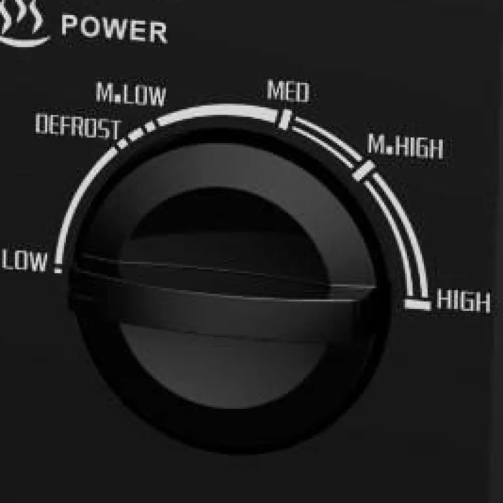 Mikrobølgeovnens design er stilfuldt i sort, har en kapacitet på 20 liter og 6 forskellige effekter at vælge imellem. Der er også en timer og en optøningsfunktion. Et signal fortæller dig også, hvornår maden er klar.