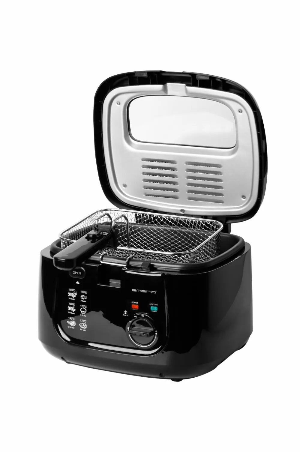 Denne praktiske frituregryde fra emerio har en effekt på 1800 W og varmer hurtigt olien op til den valgte temperatur. Med en kapacitet på 2,5 liter kan du fylde trådkurven med alle former for mad, og efter kort tid kan du løfte trådkurven op med den gyldne og lækre stegte mad.