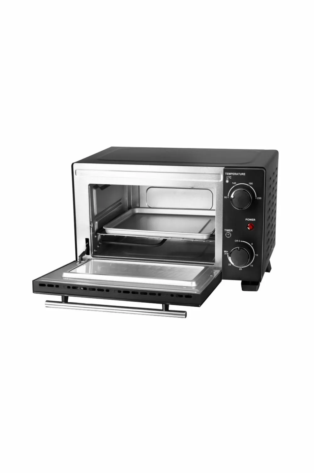 Ovnen er sort og optimalt designet med en maksimal effekt på 800w og en ovnkapacitet på 10 liter. Ovnen har en justerbar temperatur mellem 90-230°c med både over- og undervarme. Derudover medfølger der også en bageplade og en rist.
