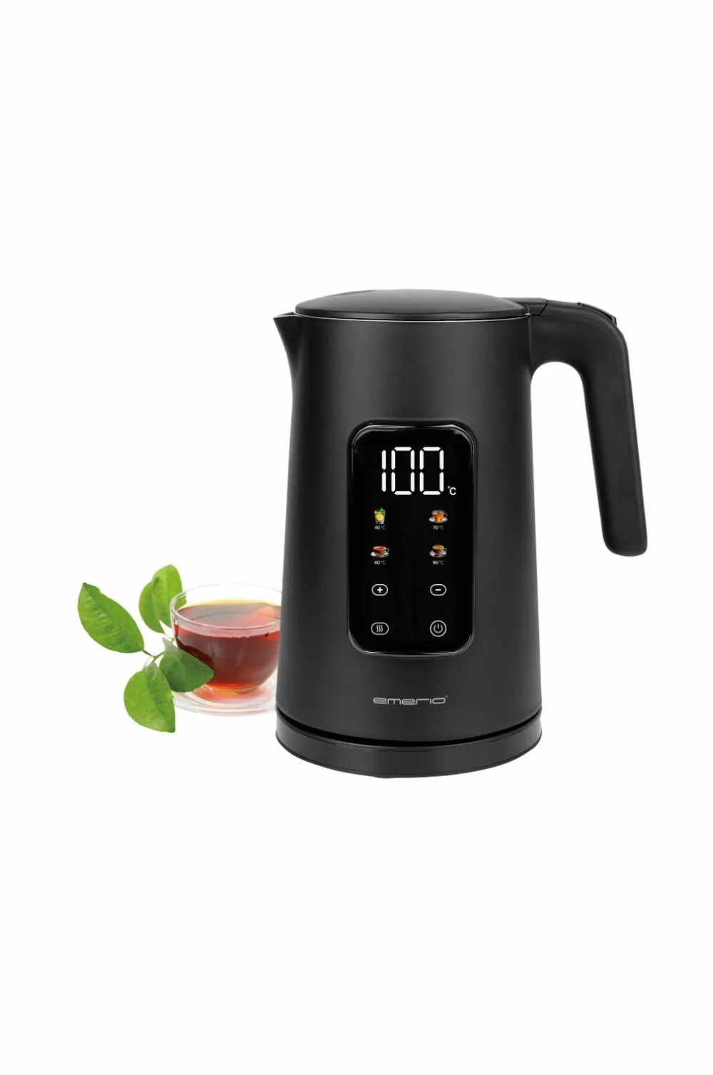 Designet er stilfuldt i mat sort og er ledningsfrit. Kedlen har tydelige vandstandsangivelser og automatisk slukning. Store digitale tal, der tydeligt