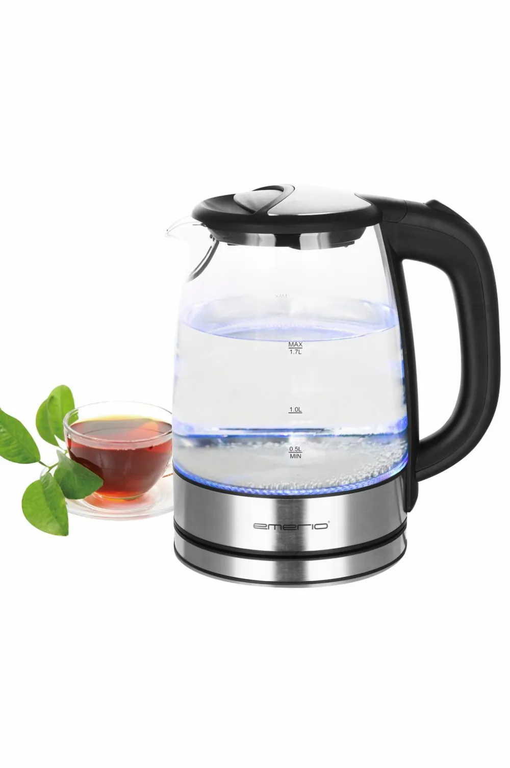 Denne hurtige og meget elegante kedel med en effekt på 2.200 watt koger hurtigt dit vand, mens en flot og effektiv blå glød spreder sig i det boblende vand.