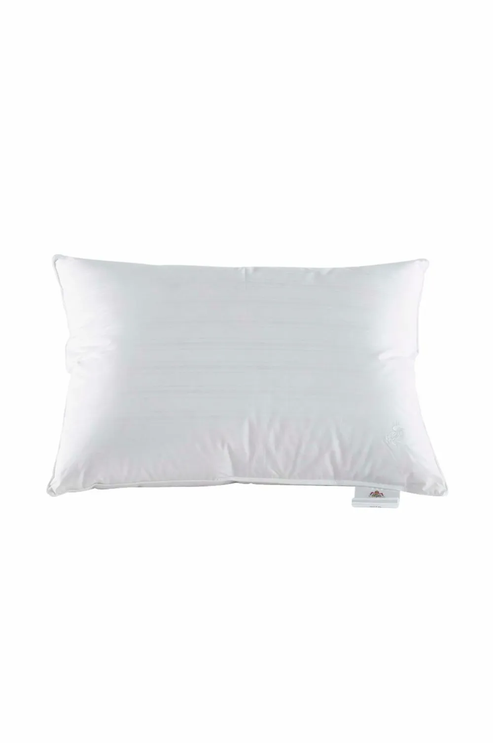 Med Astrid hviler du blødere eller fastere, men altid skønnere. Meget skønnere. 90% europæiske hvide gåsedun. Bæreevne 700 (10) Blødt, tæt stof i fineste bomuldscambric/twill. Farve: Hvidstribet overside/Hvid underside. Paspolering i hvid, broderi i hvid. 450 gram