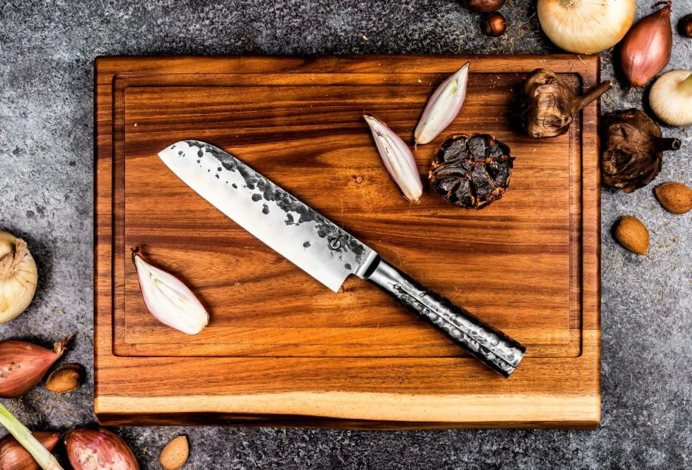forged intense santoku knife 18 cm er den japanske version af kokkens knife. Ordet “santoku” betyder “tre dyder”, en henvisning til de tre skærefunktioner, som knife kan udføre: snitte, skære i tern og hakke. Denne mangfoldighed gør den til en allrounder i køkkenet. forged intense knivene er fremstillet af japansk 440c-stål med en hårdhed på 58 rockwell. Alle forged knive er forged i hånden, har en bladtykkelse på 2 mm og en skærevinkel på 18 grader. Leveres i en luksuriøs æske.