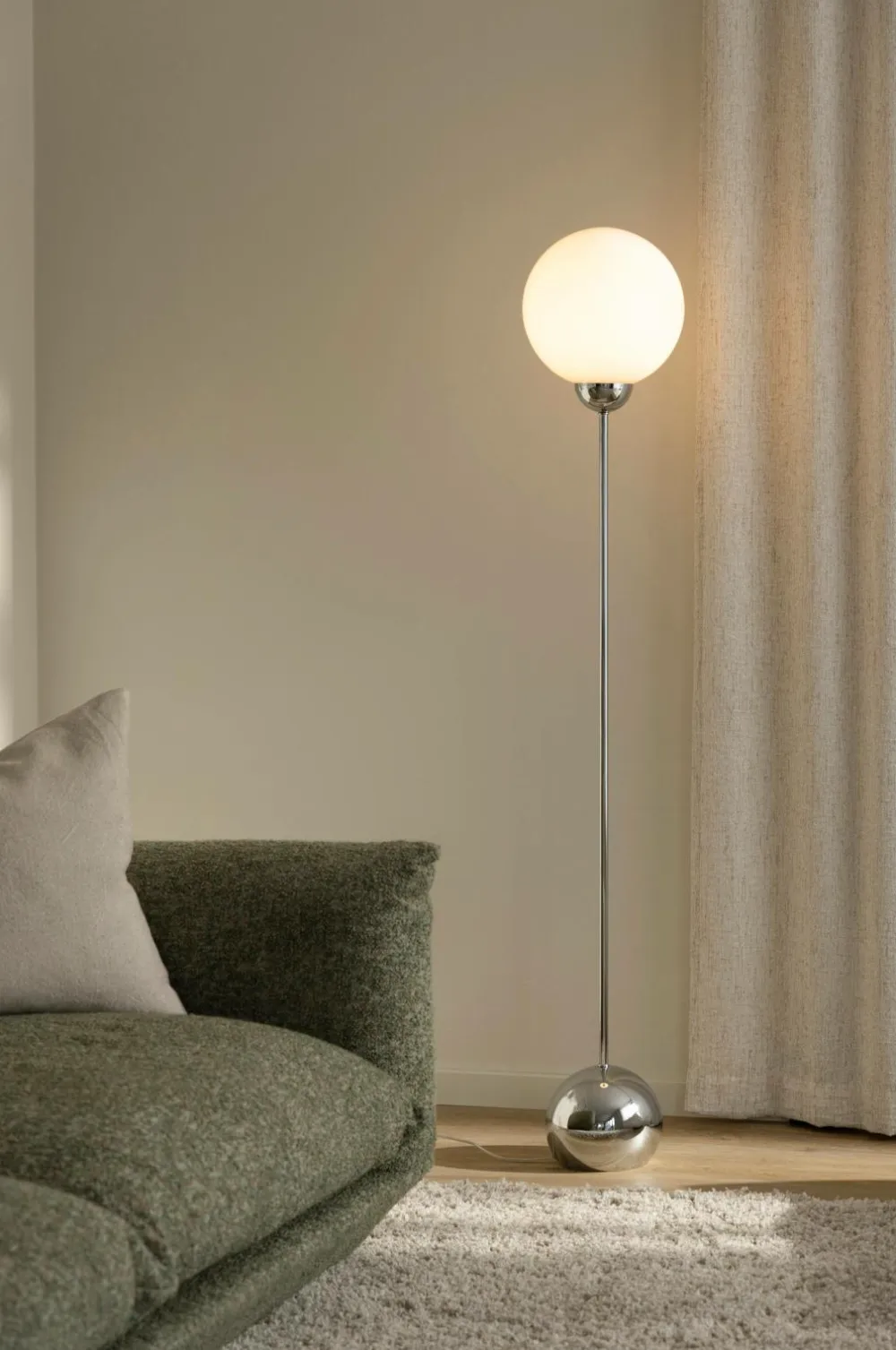 Gulvlampen ripley passer med sit både moderne og legesyge design perfekt ind i det moderne interiør. Lampen er lavet af metal med en skærm i hvidt glas og har et 200 cm langt gennemsigtigt kabel med afbryder og europlus.