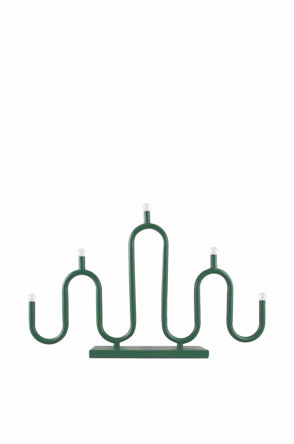 Noel har et blødt og bølgende formsprog, hvor metalrørene er bøjet i hånden i forskellige niveauer, hvilket skaber den klassiske form af en adventsstage. Noel ser lige så godt ud i vinduet som på et sidebord. Lampen leveres med et 200 cm langt sort kabel med sort afbryder, transformer og europastik. Undersiden er dækket af filt for at beskytte overflader mod ridser. Denne lampe er kompatibel med E10-pærer, maks. 3W/34V, lyskilder er inkluderet. (Ac/Dc, 34V, 0,25W, 2700K, 14lm).
