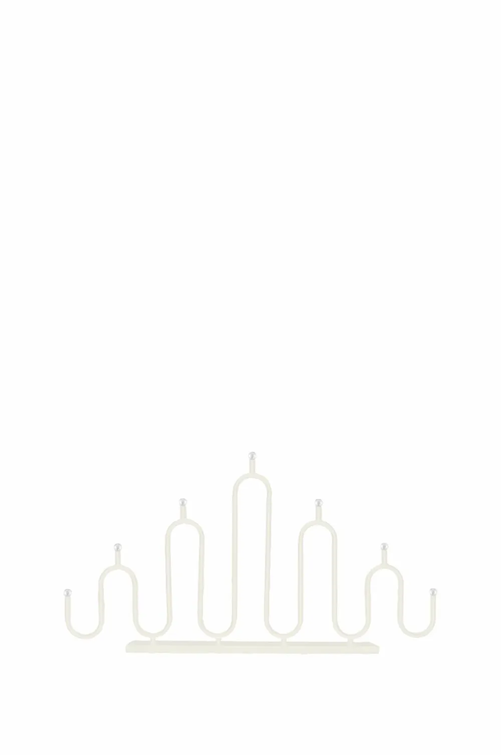 Noel har et blødt og bølgende formsprog, hvor metalrørene er bøjet i hånden i forskellige niveauer, hvilket skaber den klassiske form af en adventsstage. Noel ser lige så godt ud i vinduet som på et sidebord. Lampen leveres med et 200 cm langt sort kabel med sort afbryder, transformer og europastik. Undersiden er dækket af filt for at beskytte overflader mod ridser. Denne lampe er kompatibel med E10-pærer, maks. 3W/34V, lyskilder er inkluderet. (Ac/Dc, 34V, 0,25W, 2700K, 14lm).