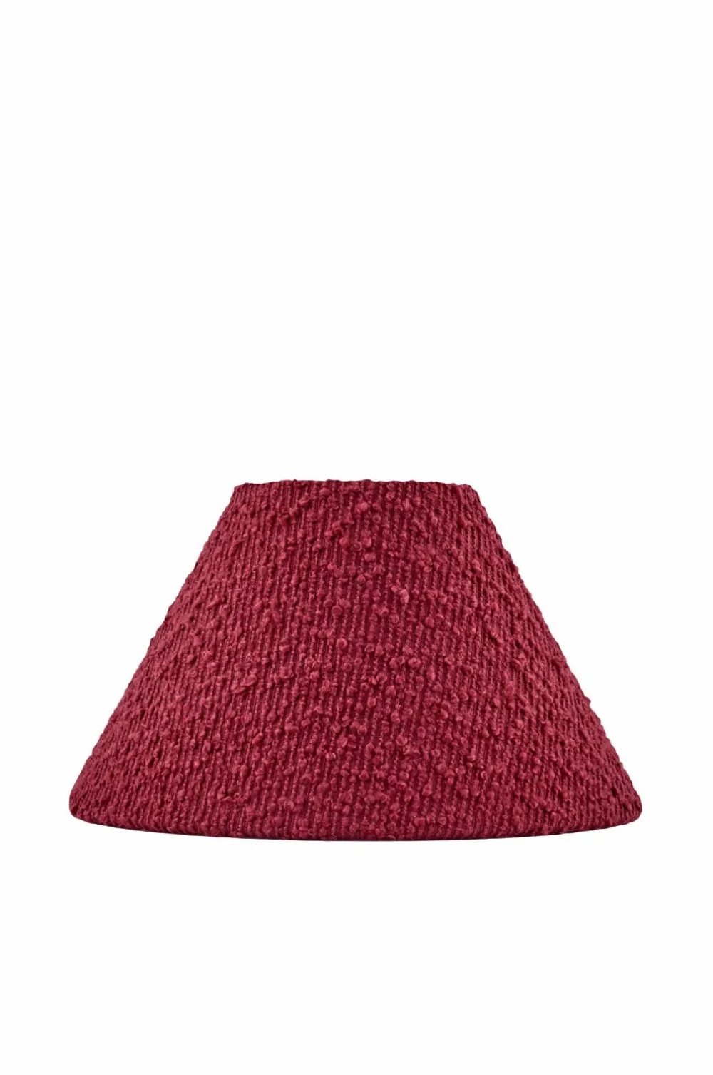 Iris’ smukke tekstilskærm er håndlavet af bouclé-stof. Skærmen har et topdæksel i matchende tekstil, og inden i skærmen er der en hvid blændingsskærm af plast. Skærmen har en e14-kloholder, der passer rundt om en lyskilde.