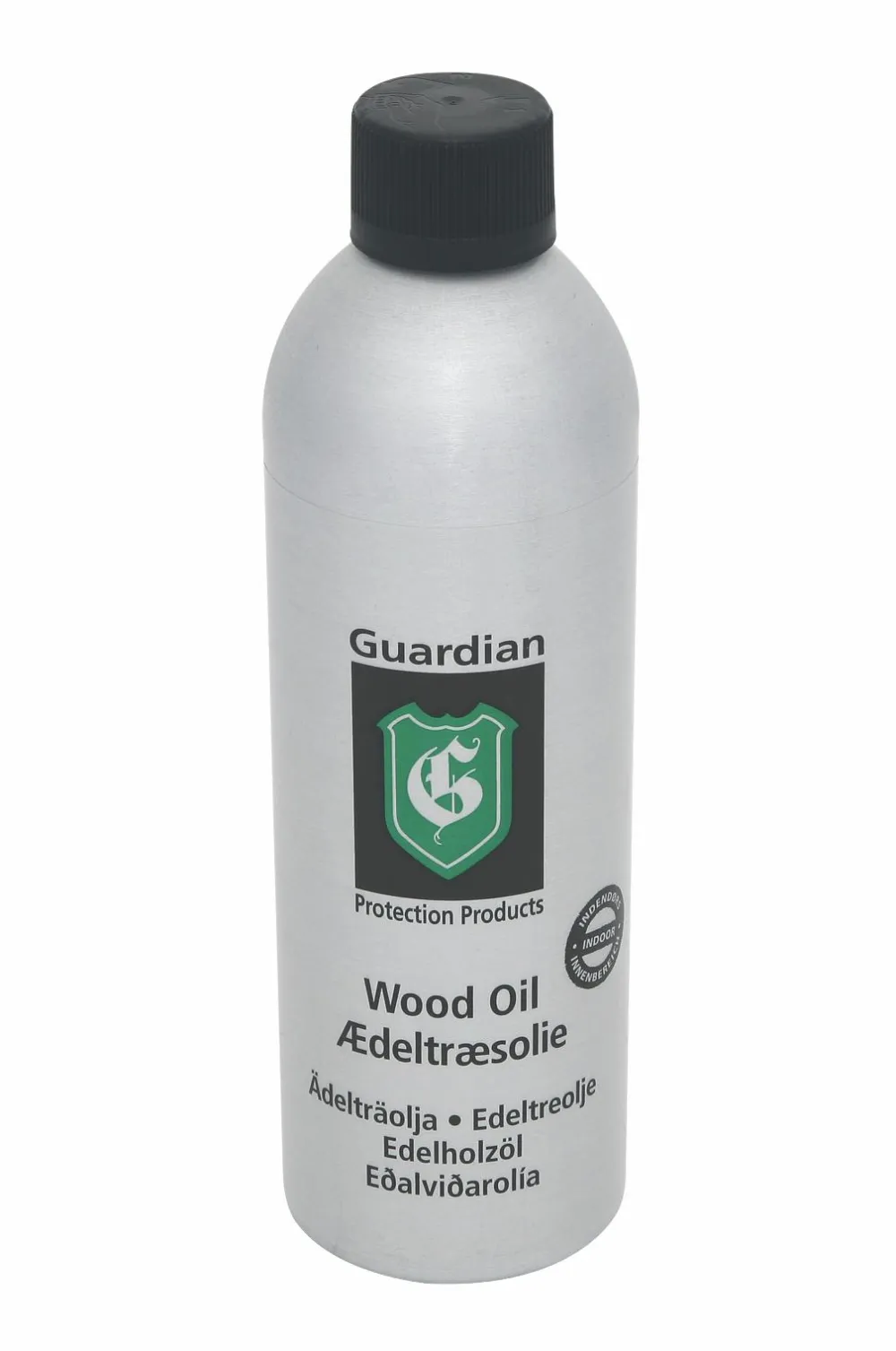Guardian ædeltræsolie bruges til vedligeholdelse af ubehandlede eller olierede møbler i hårde træsorter som bøg, ask, eg, teak og lignende. Den terpentinfri olie er baseret på de fineste og reneste olier, virker vandafvisende og beskytter træet mod udtørring. 600 ml