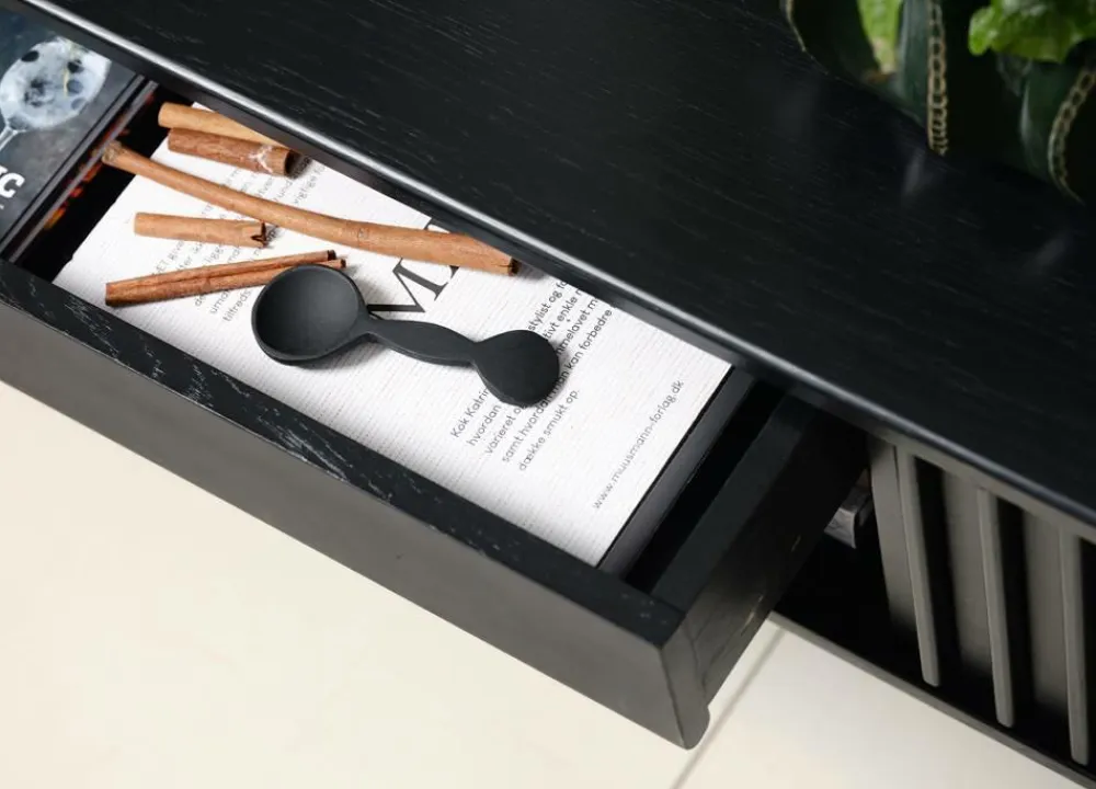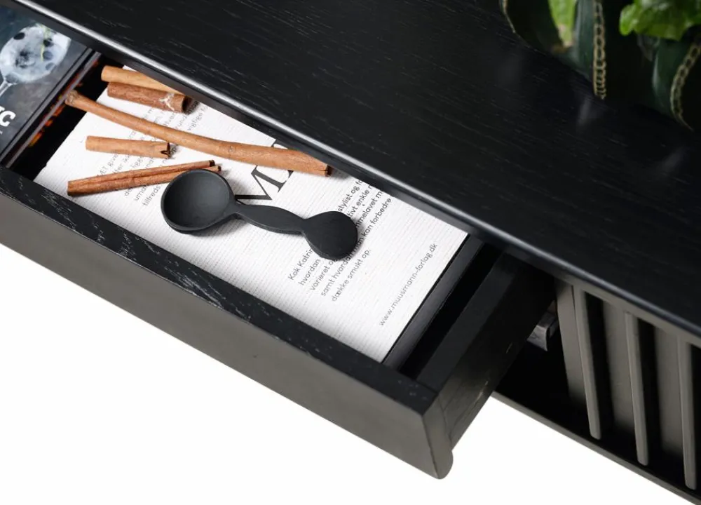 Ved at kombinere massiv eg, elegante metalben og bløde, organiske linjer i ensfarvet sort, har en trendy, unik kollektion set dagens lys.