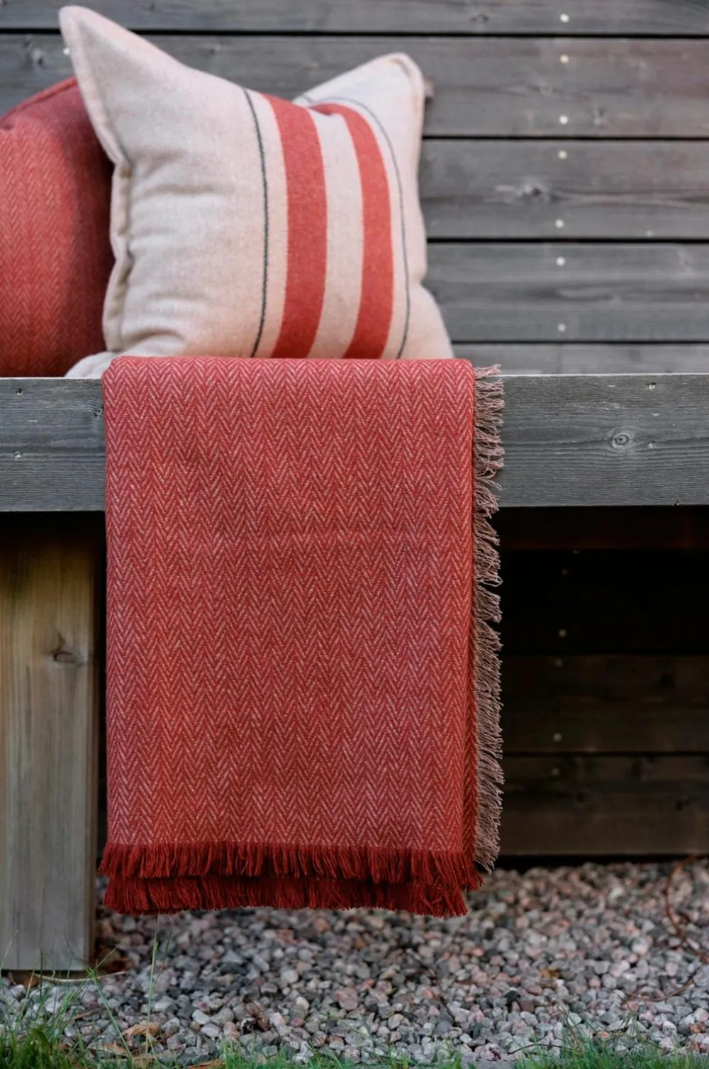 Nyd en varm og hyggelig følelse i sengen eller på sofaen med det dejlige asima-tæppe. Det har et elegant sildebensmønster. Fremstillet af mindst 65% uld og op til 35% andre fibre. Størrelsen er 120×200 cm, og det fås i flere farver.