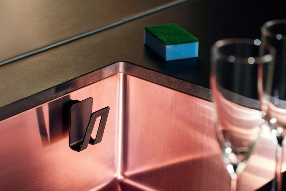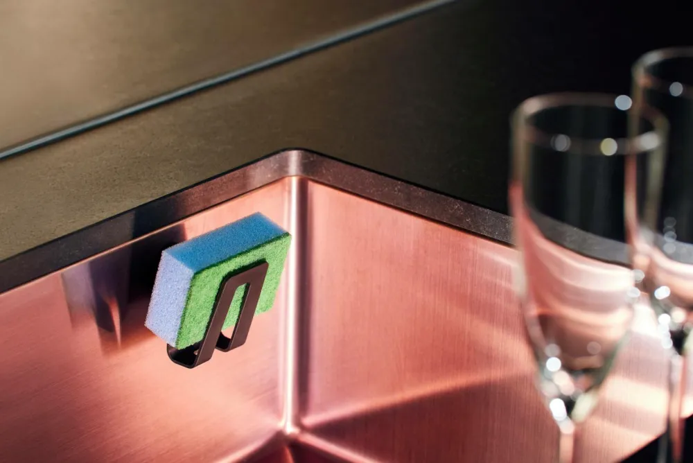 En holder, som opbevarer svampen ude af syne men inden for rækkevidde af din køkkenvask. En hygiejnisk opbevaringsløsning som også er perfekt til opvaskebørsten. Holderen sørger for at svampen tørrer hurtigt, hvilket reducerer risikoen for bakterievækst. Den monteres let på et par sekunder ved køkkenvasken med det smarte magnetsystem Magnet Fitting System. Værktøj ikke nødvendigt. Produktet er lavet af biokompositmateriale for at reducere CO2-aftrykket, derfor er overfladen og den naturlige koksgrå farve lidt ujævne. Mål 7 x 5 x 7,5 cm.