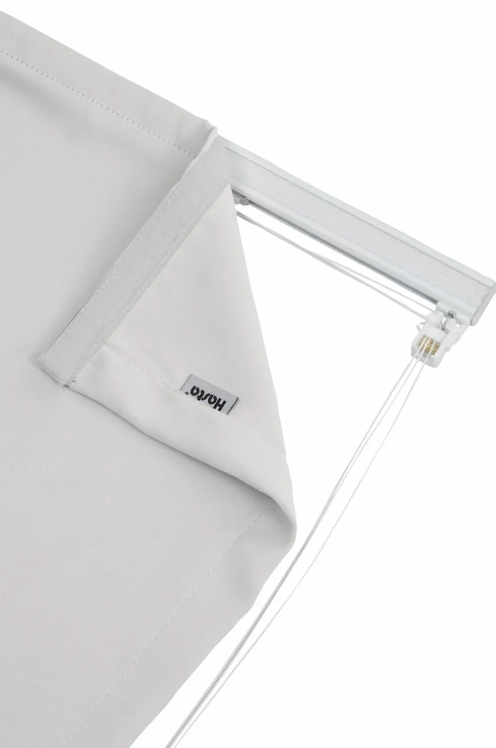 Udtrækkeligt foldegardin med blødt stof. Højden kan justeres med en snor. Skinne med velcro og snor til fastgørelse medfølger. Højde: 160 cm. Let at installere med klikmontering. Loft- og vægbeslag medfølger.