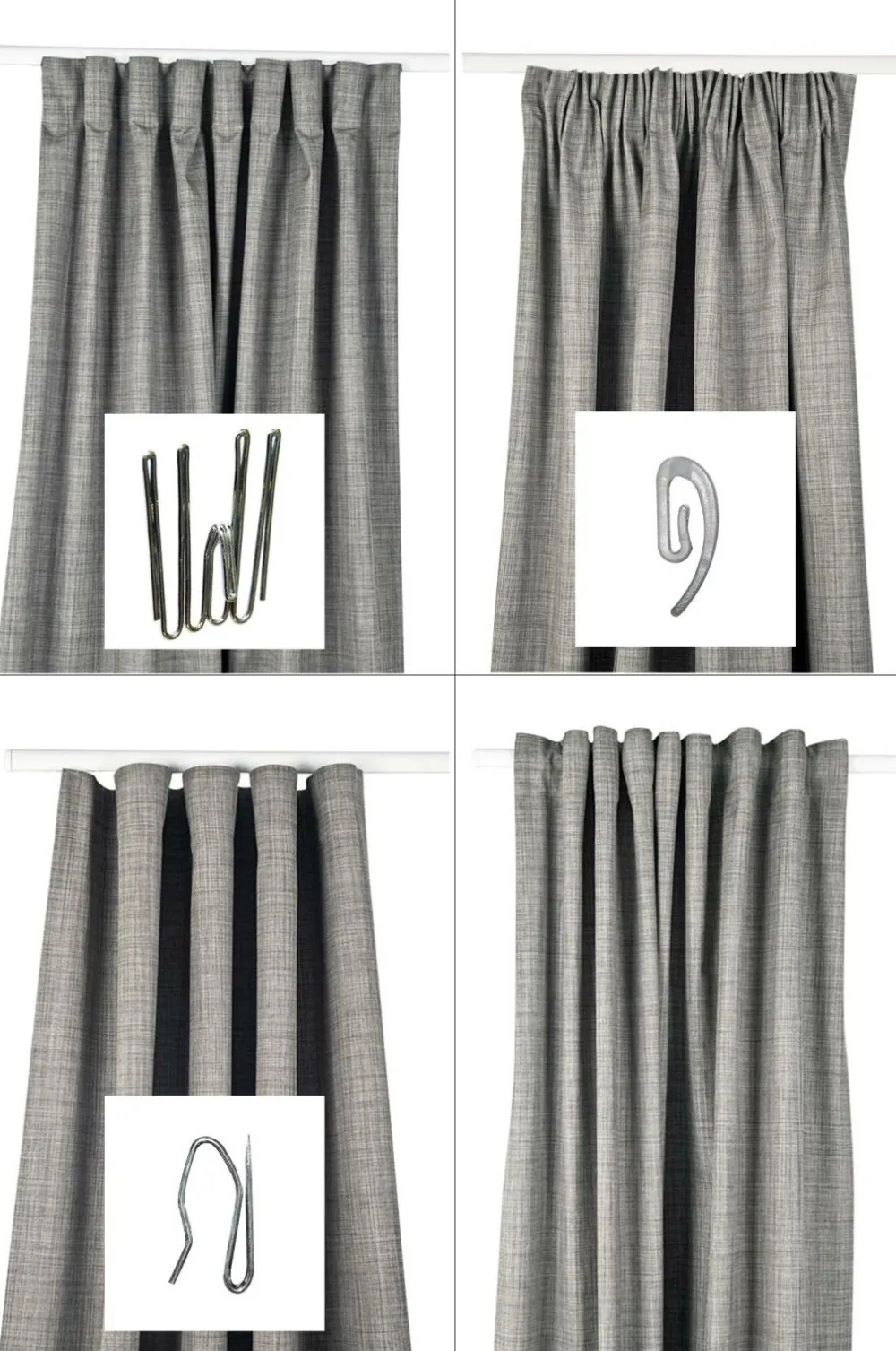Combobånd er et unikt gardinbånd med fire forskellige opsætninger. Lægbånd, rynkebånd, waveband eller direkte på stangen i stropper. Længde 3,4 meter, rækker til 2 gardinlængder.