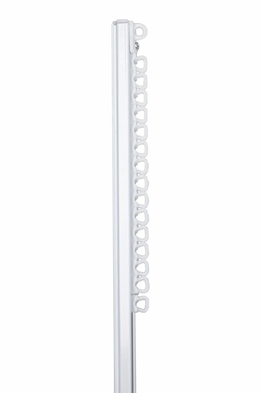 Hvid 150 cm skinne i aluminium til lette gardiner. 15×10 mm. Perfekt loftskinne når du ønsker at dine gardiner skal gå fra loft til gulv. I pakken medfølger skinne, stop, beslag og glidere komplet til ophængning. Der medfølger 15 glidere pr. meter skinne. Monteres i loftet med skruer.