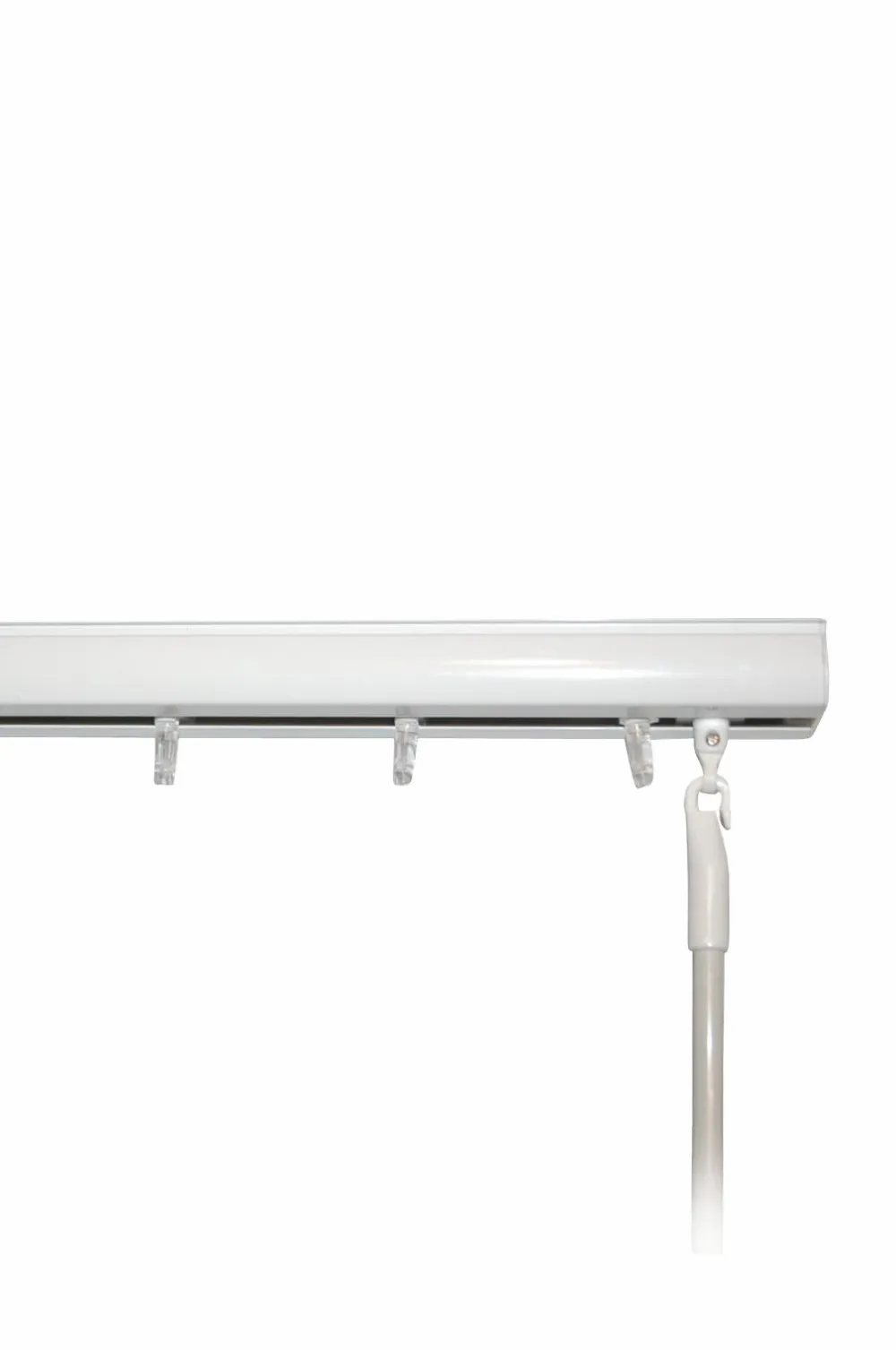 Færdigmonteret lamelgardinskinne i høj kvalitet. Manøvreringsstang for træk- og åbningsfunktion. Instruktion for forkortelse af skinnen medfølger. Kompletteres med Monoflex lameller som findes i 7 forskellige væv.