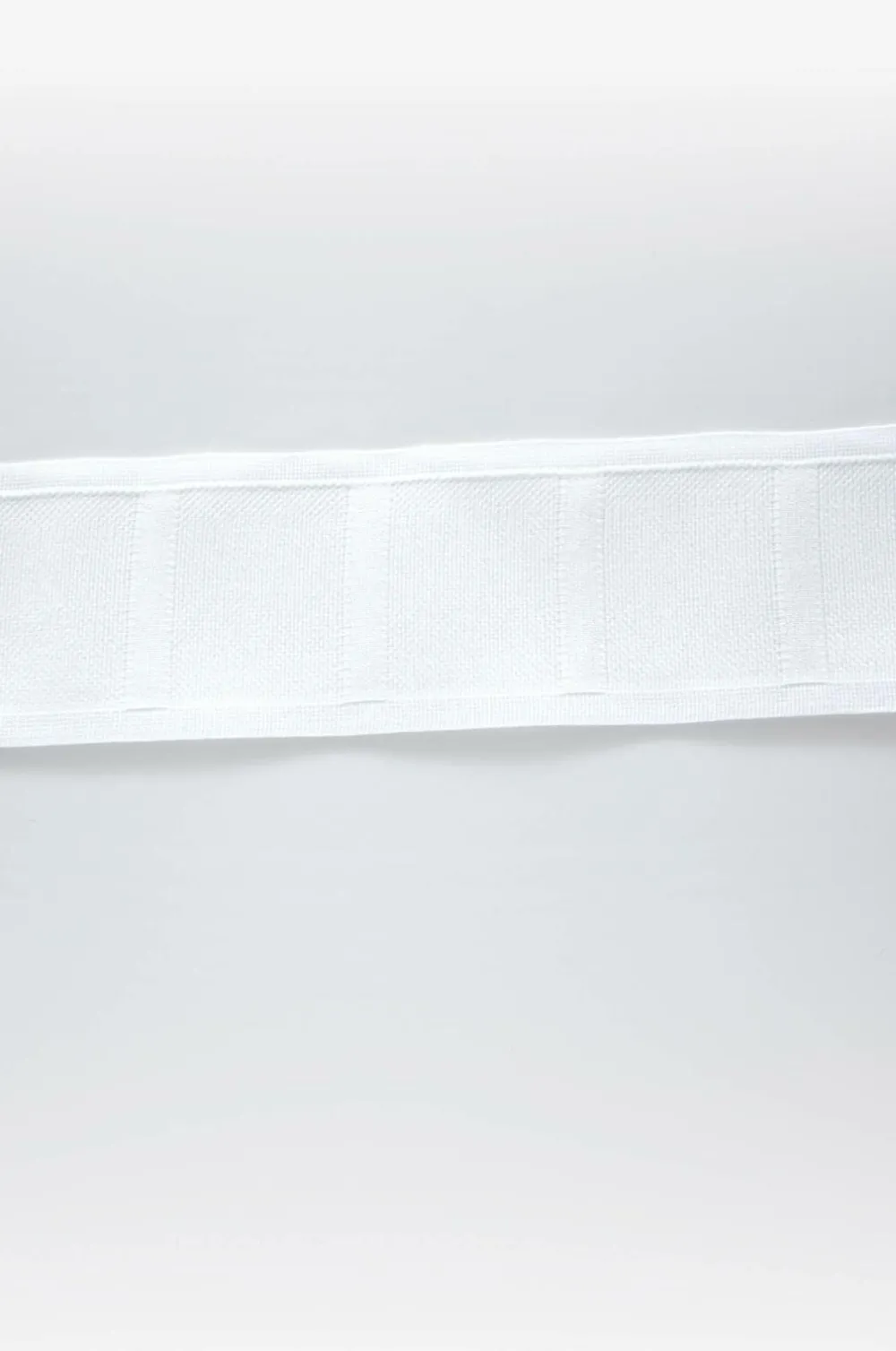 Hvid rynkebånd 3,1 m/pk., polyester/bomuld. Bredde 7 cm.