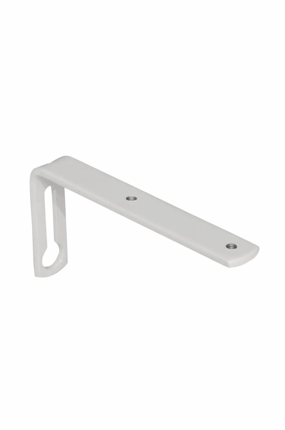 Vægvinkel hvid 10 cm, med mulighed for at sætte 2 skinner fast i. Skinnebeslaget monteres på vinklen, som monteres direkte på væg med skruer og rawplugs. Passer godt i vægbeslag, som ofte bruges i lejligheder, hvor du ikke må bore nye huller.