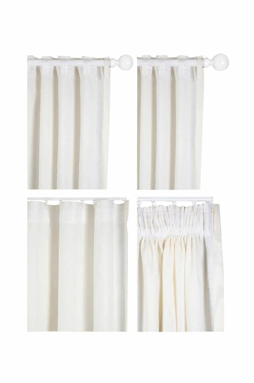 Gardin i rustik stil med linnedlook. Smart kombibånd med fire forskellige ophængningsmuligheder: direkte på stangen, med dybe plisseekroge, flæsekroge eller en moderne bølgestil. Gardinkroge medfølger ikke. En gardinlængde pr. pakke.