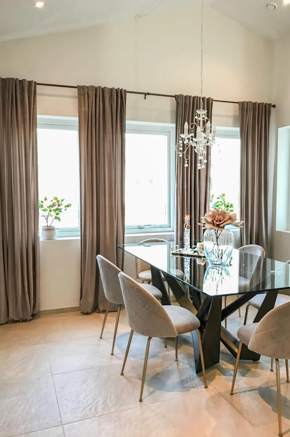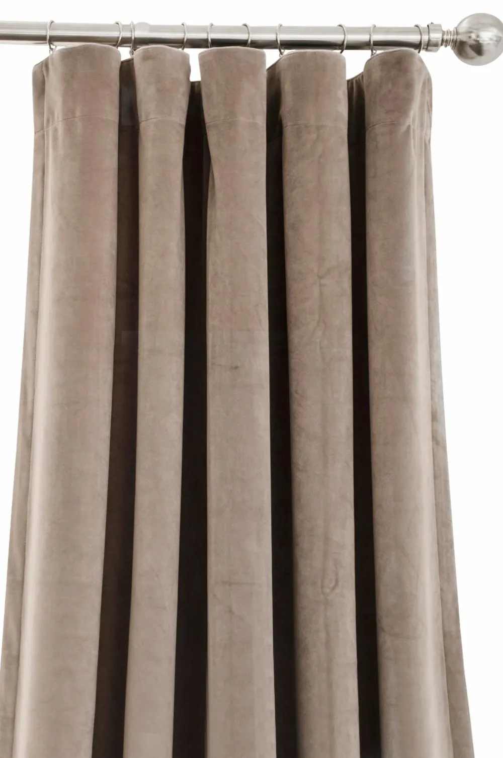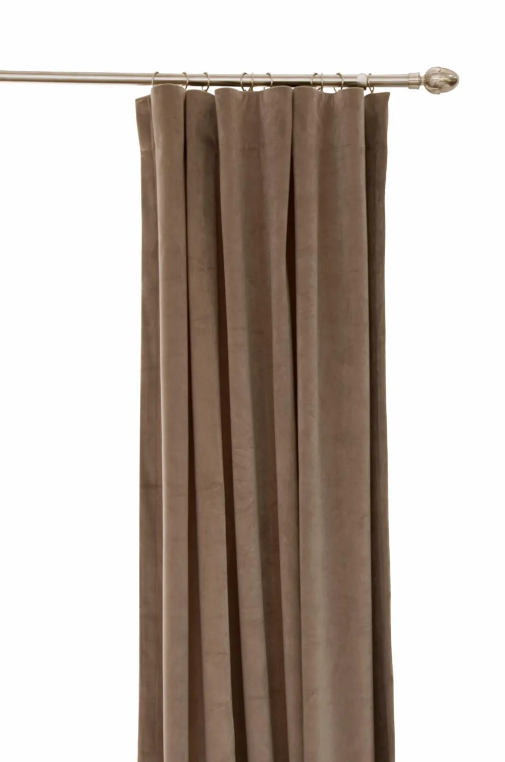 Klassisk gardinlængde i velour. Bredde 134 cm. 250 cm lang. Gardinet har kombibånd så du kan hænge gardinet op på 4 forskellige måder med ét bånd.