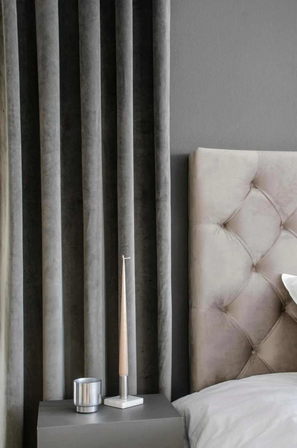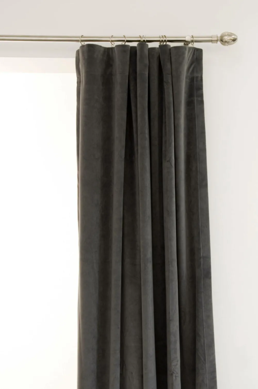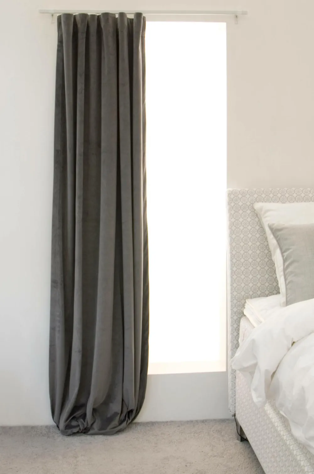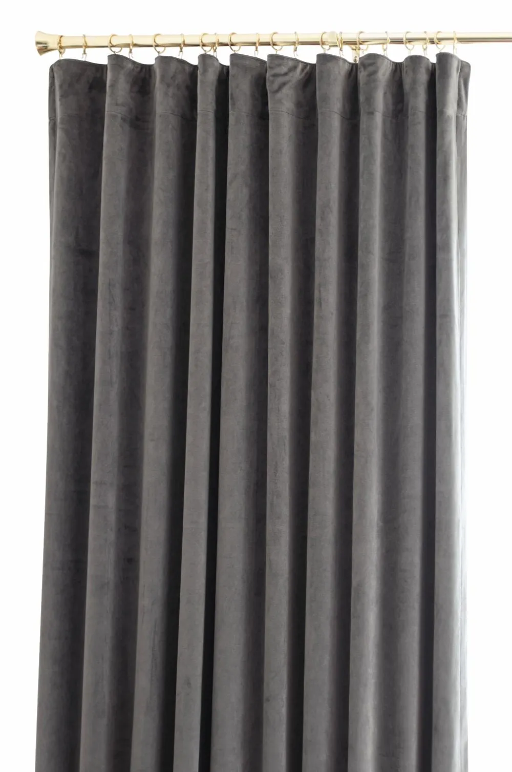 Klassisk gardinlængde i velour. Bredde 134 cm. 250 cm lang. Gardinet har kombibånd så du kan hænge gardinet op på 4 forskellige måder med ét bånd.