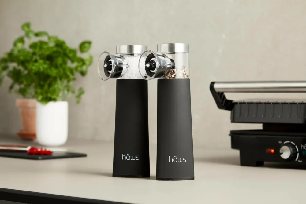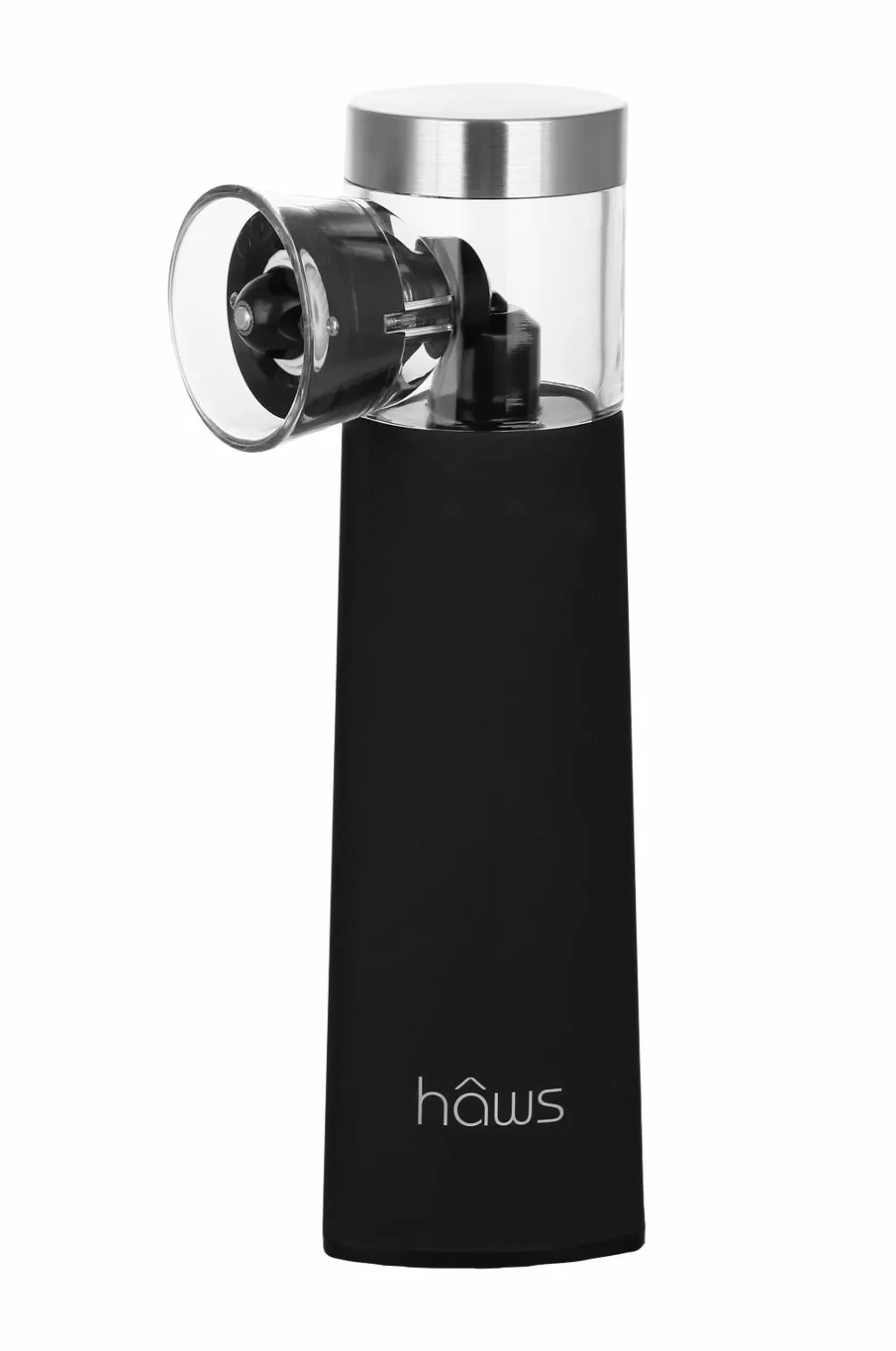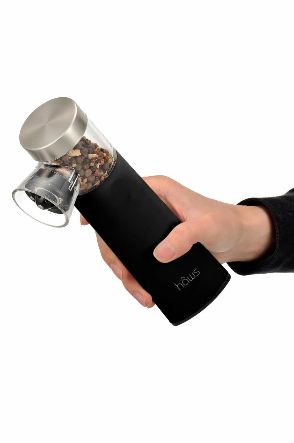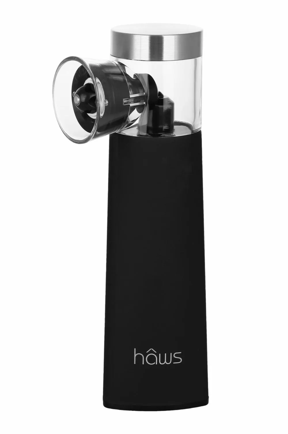 Den elektriske krydderikværn fra hâws er en universalkværn, der kan bruges til stort set alle tørre krydderier. Produktet kan bruges med kun én hånd og kræver ikke, at man vrider eller trykker for at frigøre krydderierne. Når kværnen vippes fremad, begynder den automatisk at kværne krydderierne. Et perfekt produkt at have i køkkenet, hvis man skal bruge én hånd til at røre og smage eller til personer med nedsat kraft/håndproblemer. Det er muligt at justere kværnens grovhed ved at dreje på spidsen.