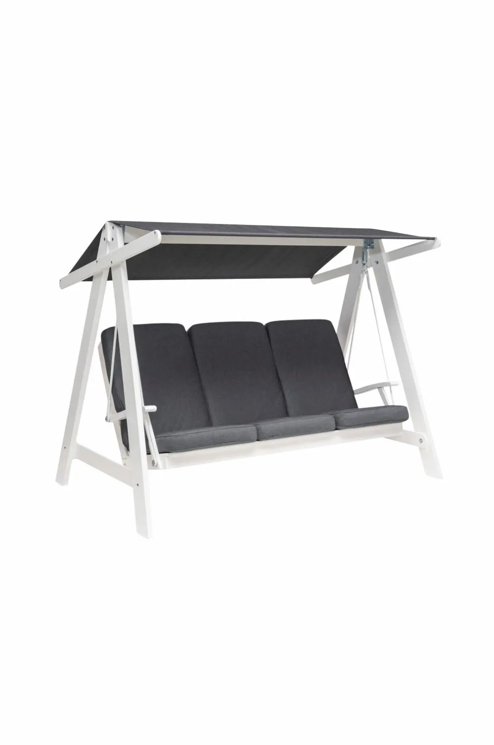 En moderne hængesofa lavet af fyrretræ fra Sverige. Rebet er lavet af polyester. Tag og hynder i panama, en polyesterblanding, der er 100 % genanvendt. Et slidstærkt stof med en meget vandafvisende overflade. Panama er også antibakterielt og har en høj modstandsdygtighed over for klorholdigt vand, hvilket er ideelt i nærheden af pools og spabade. UV-bestandighed 7-8/8.