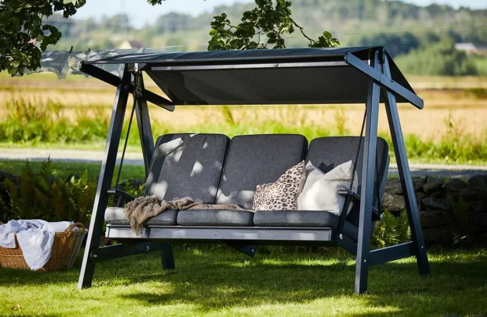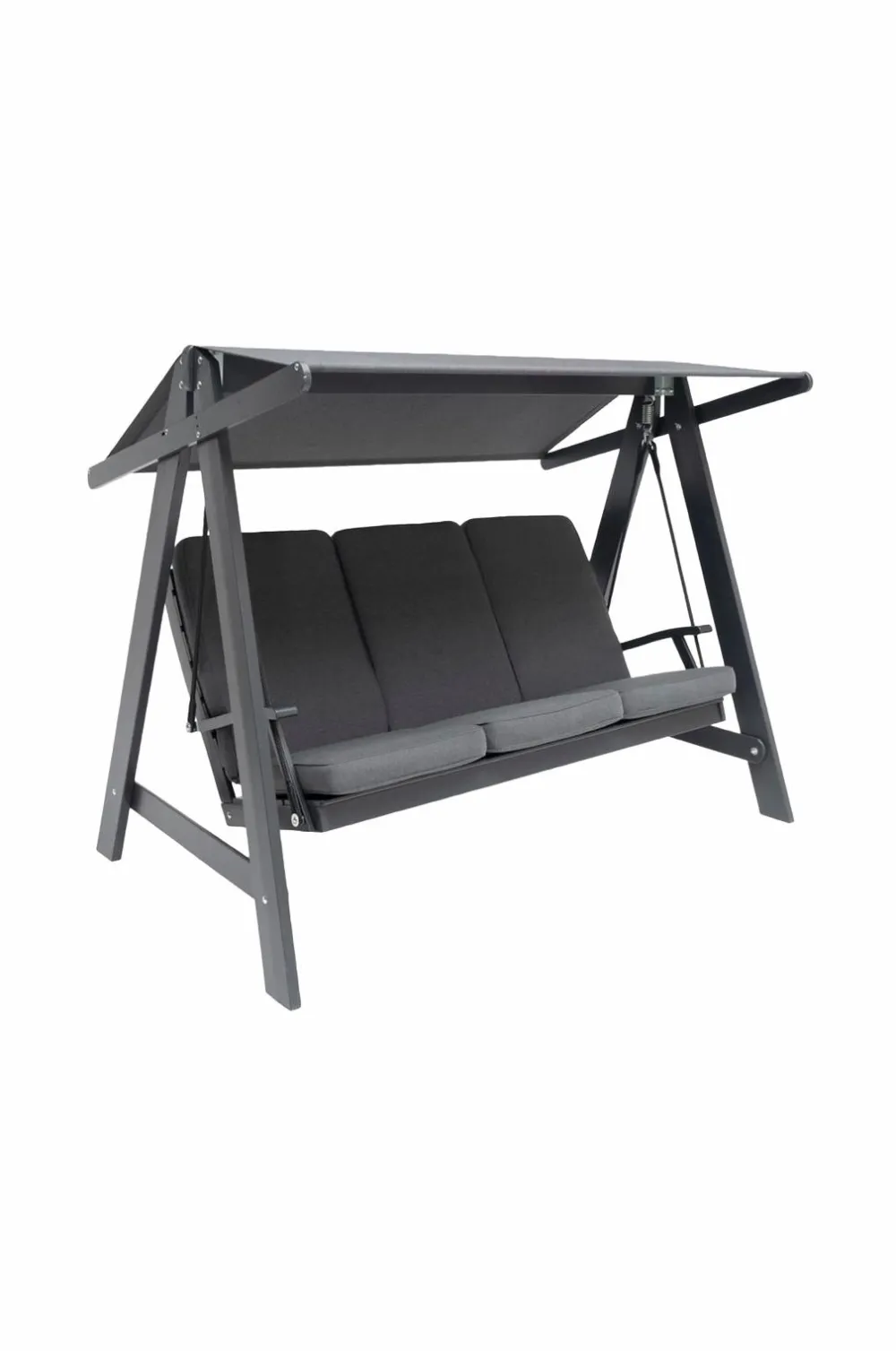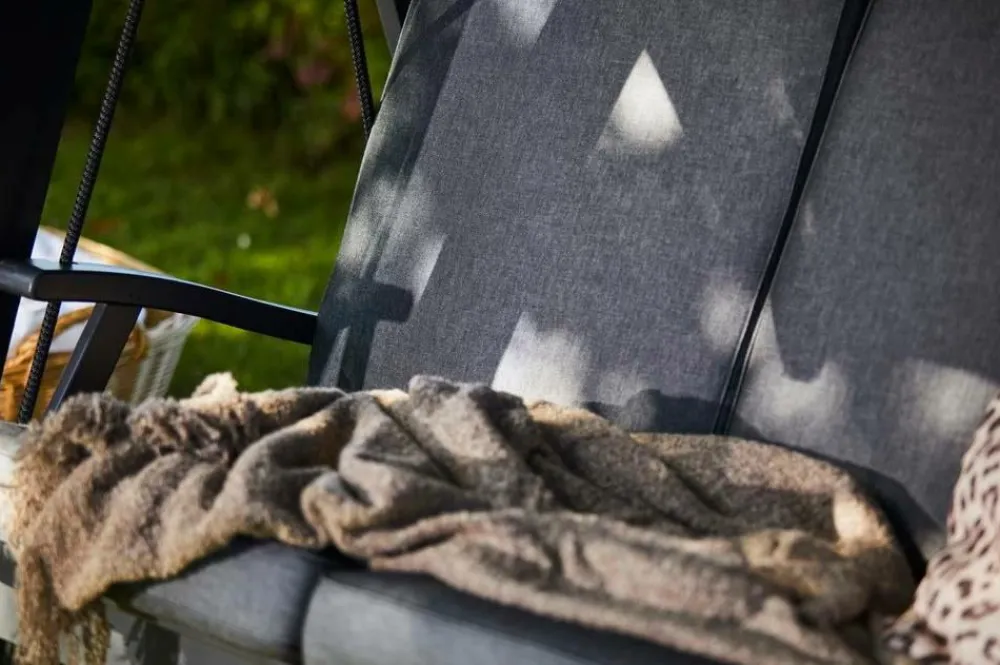 En moderne hængesofa lavet af fyrretræ fra Sverige. Rebet er lavet af polyester. Tag og hynder i panama, en polyesterblanding, der er 100 % genanvendt. Et slidstærkt stof med en meget vandafvisende overflade. Panama er også antibakterielt og har en høj modstandsdygtighed over for klorholdigt vand, hvilket er ideelt i nærheden af pools og spabade. UV-bestandighed 7-8/8.