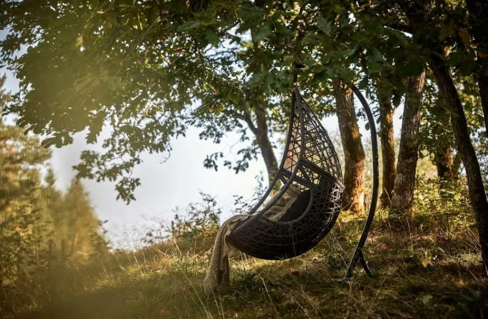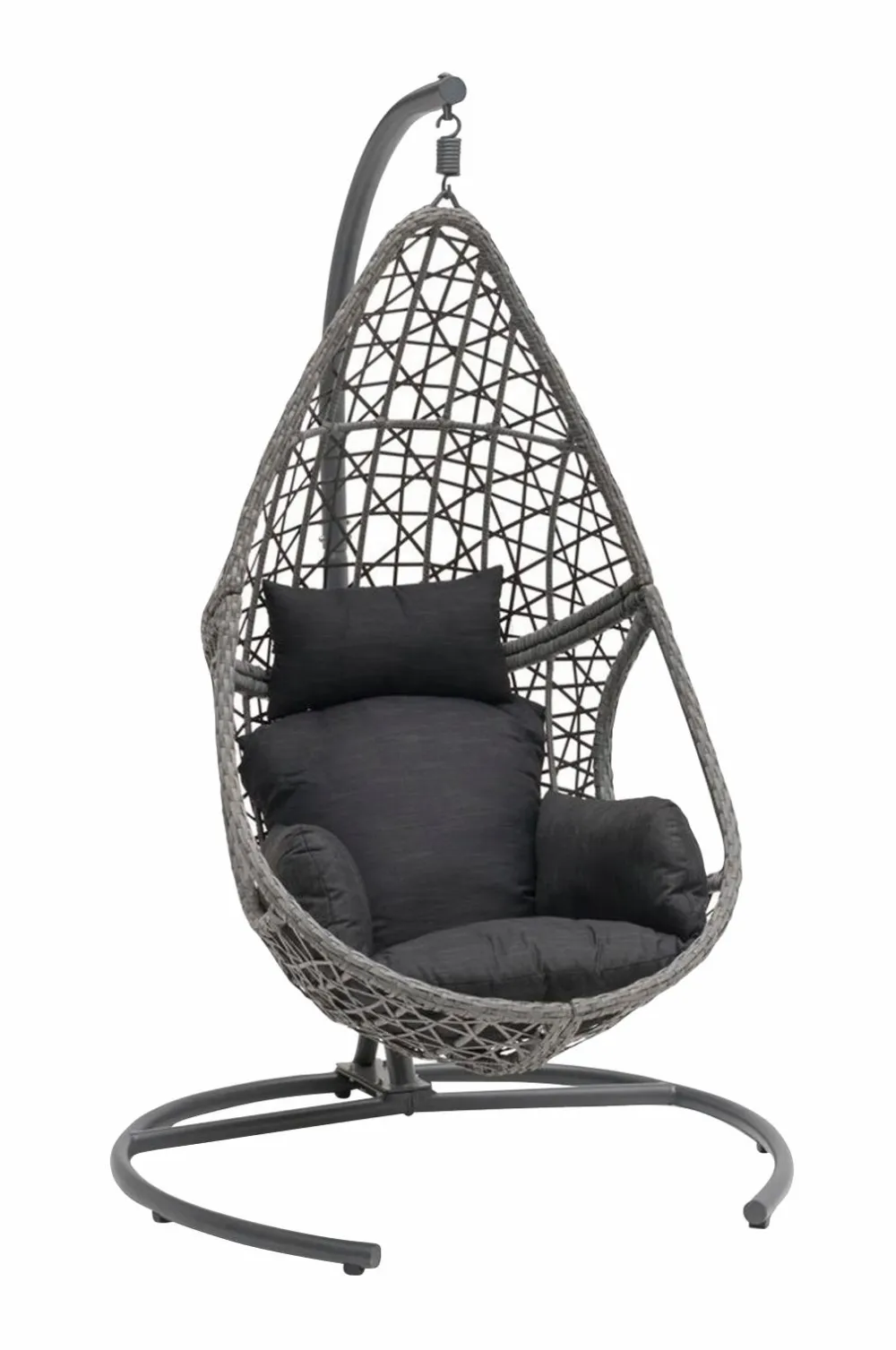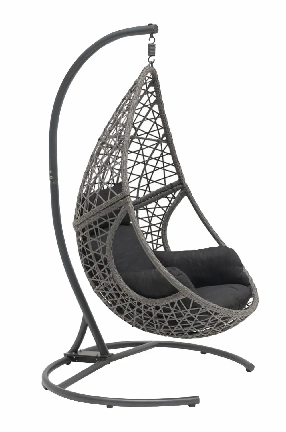 Droppen recliner er en trendy og komfortabel hængestol i grå flet med et stativ i sort metal. Her kan du sidde og svinge let, mens du nyder din fritid. For ekstra komfort medfølger en blød hynde i grå polyester.