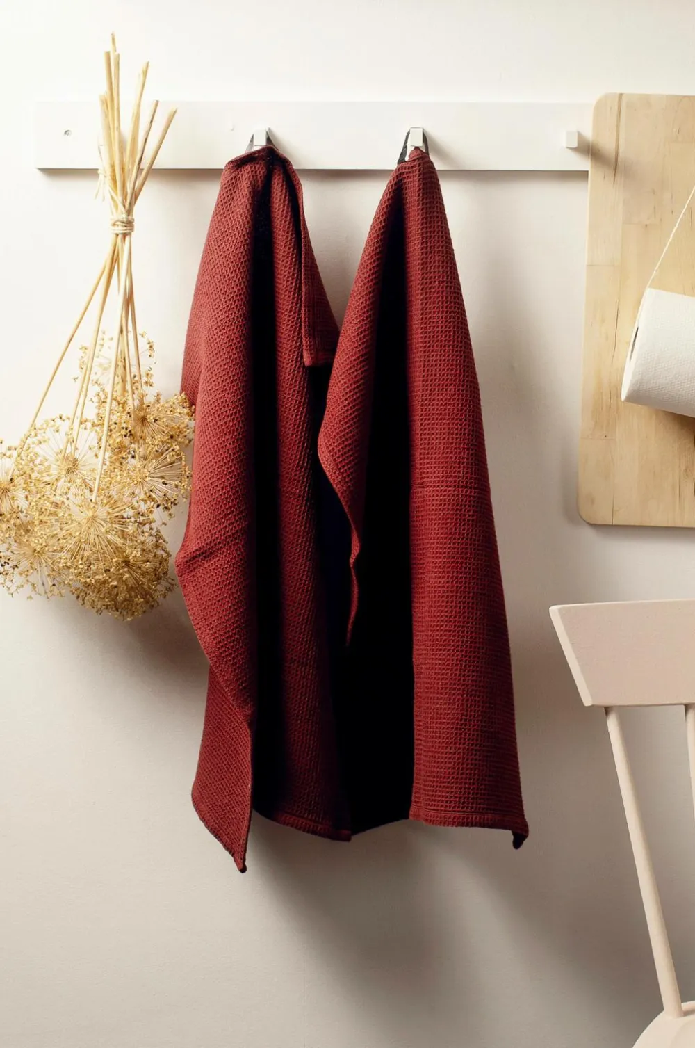 Hetty Køkkenhåndklæde med luksuriøs vaffelstruktur i 30 % hør og 70 % bomuld. Håndklædet er forvasket, hvilket giver det en blød fornemmelse. Fremragende sugeevne og tørrer hurtigt. Pakke med 2 håndklæder. Maskinvask 60°C, krympning 5-7%.