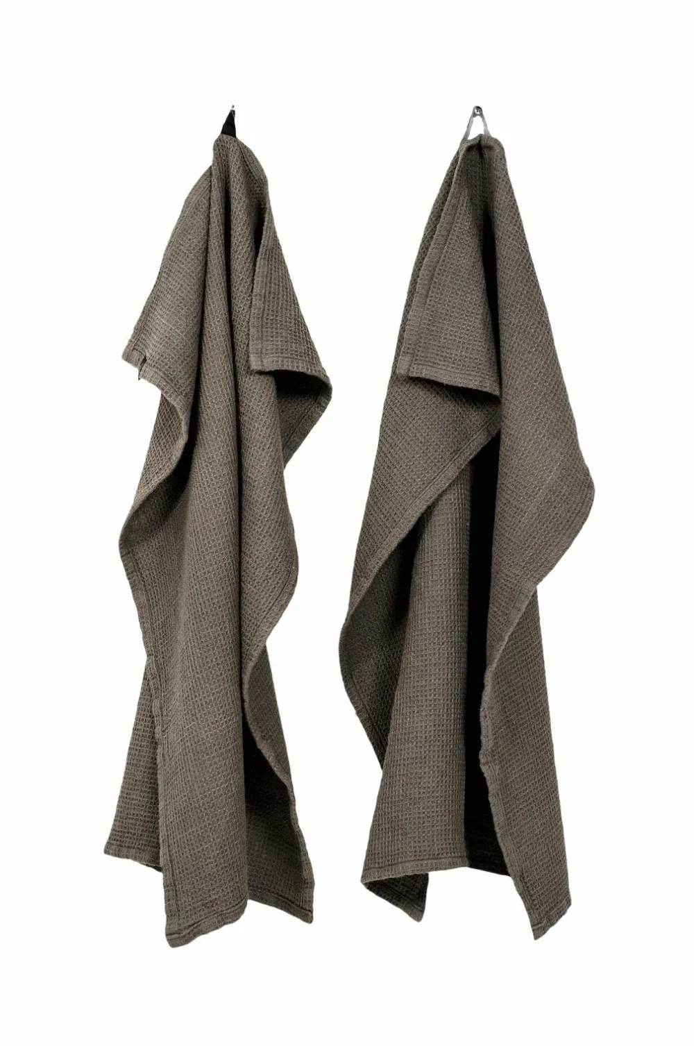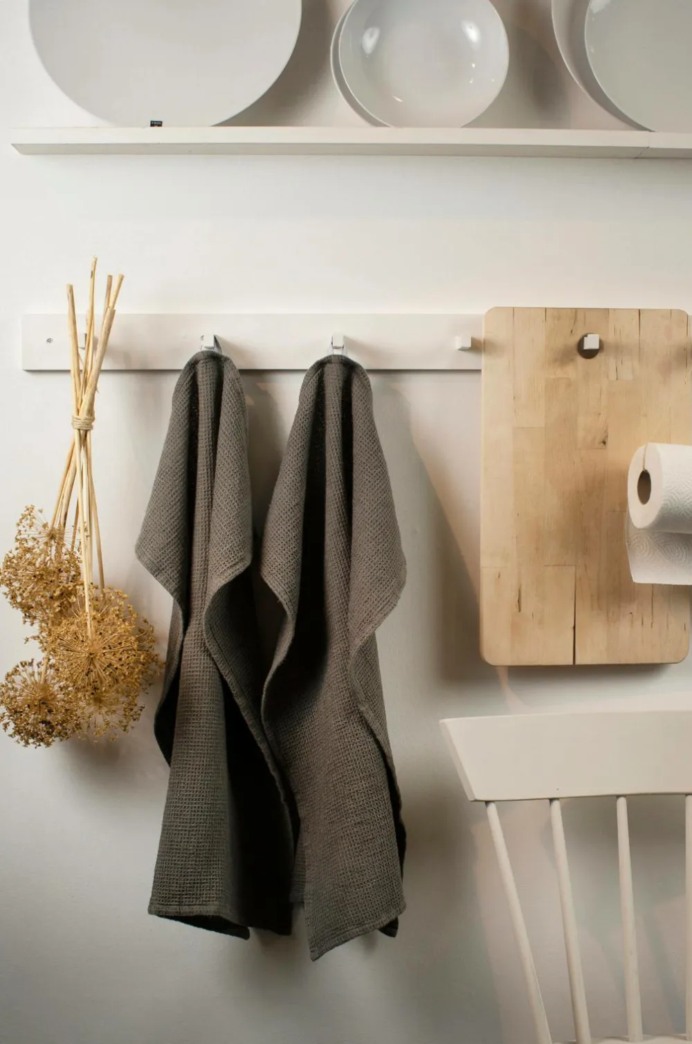 Hetty Køkkenhåndklæde med luksuriøs vaffelstruktur i 30 % hør og 70 % bomuld. Håndklædet er forvasket, hvilket giver det en blød fornemmelse. Fremragende sugeevne og tørrer hurtigt. Pakke med 2 håndklæder. Maskinvask 60°C, krympning 5-7%.